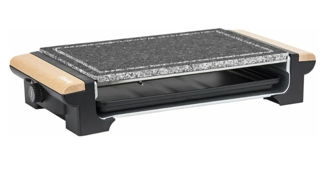 Este aparato de raclette está diseñado para comidas de convivencia de hasta 8 personas, con una piedra de granito que ofrece una generosa superficie de cocción de 37 x 23 cm, perfecta para asar una gran variedad de alimentos.