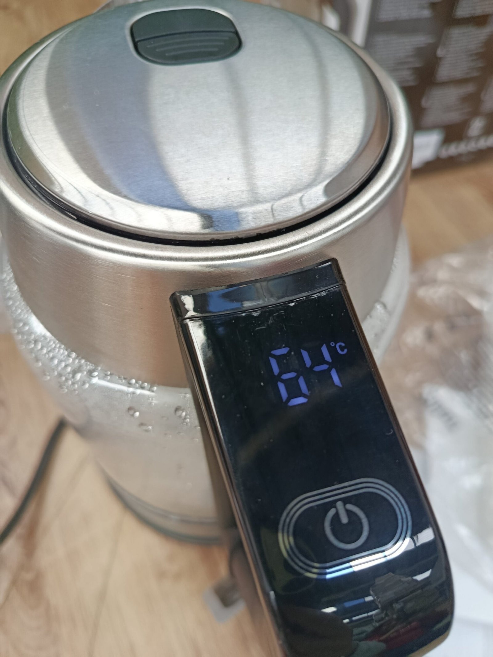 Zilan Hervidor de agua digital de vidrio con panel digital, luz LED azul, capacidad de 1,7 litros, protección contra ebullición en seco, función de mantener caliente, 2200W