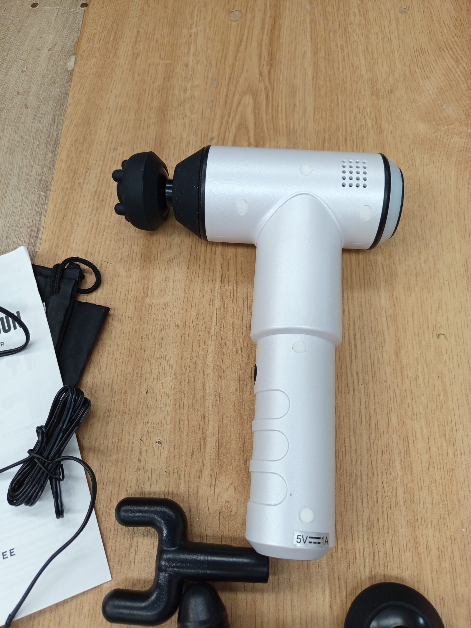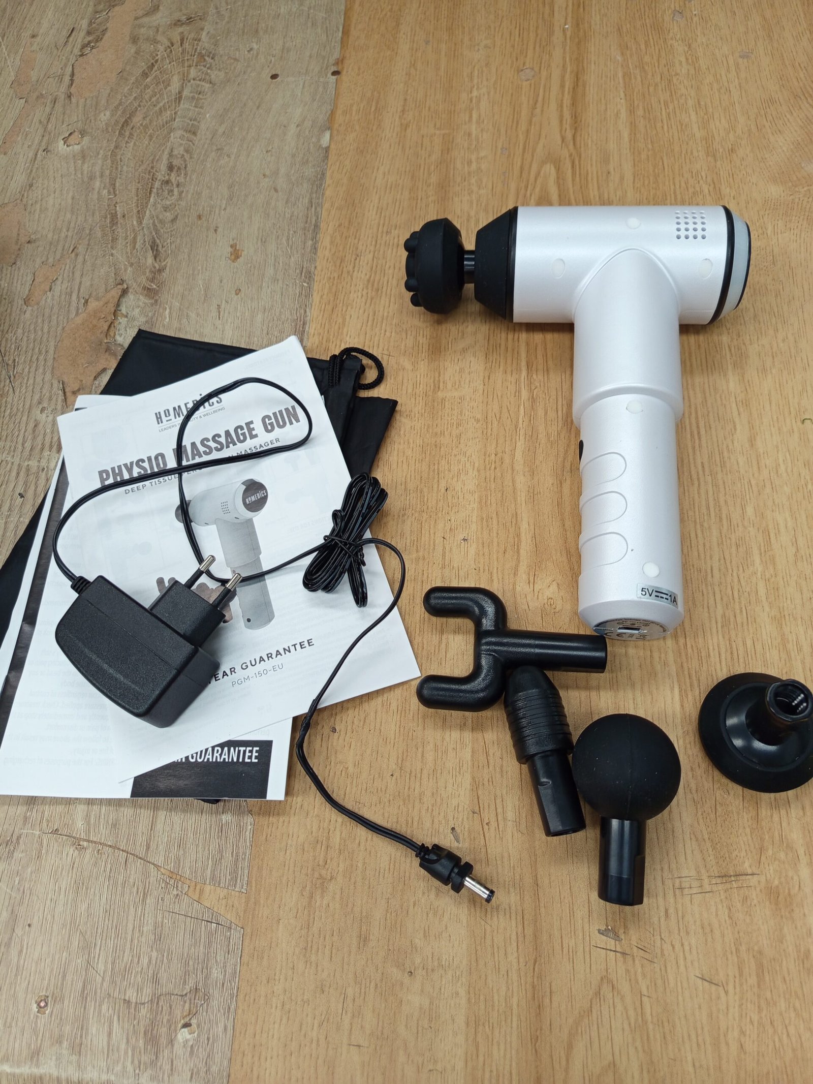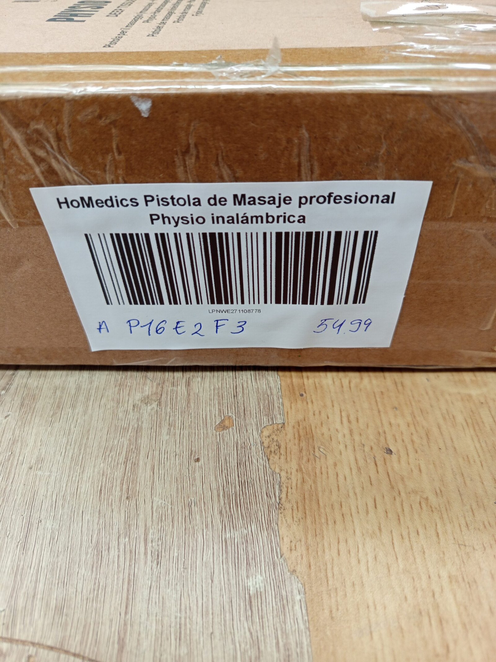 HoMedics Pistola de Masaje profesional Physio inalámbrica, Masajeador Muscular de Percusión del Tejido Profundo, 5 Cabezales de masaje y 3 intensidades para Relajación y Recuperación, color Blanco