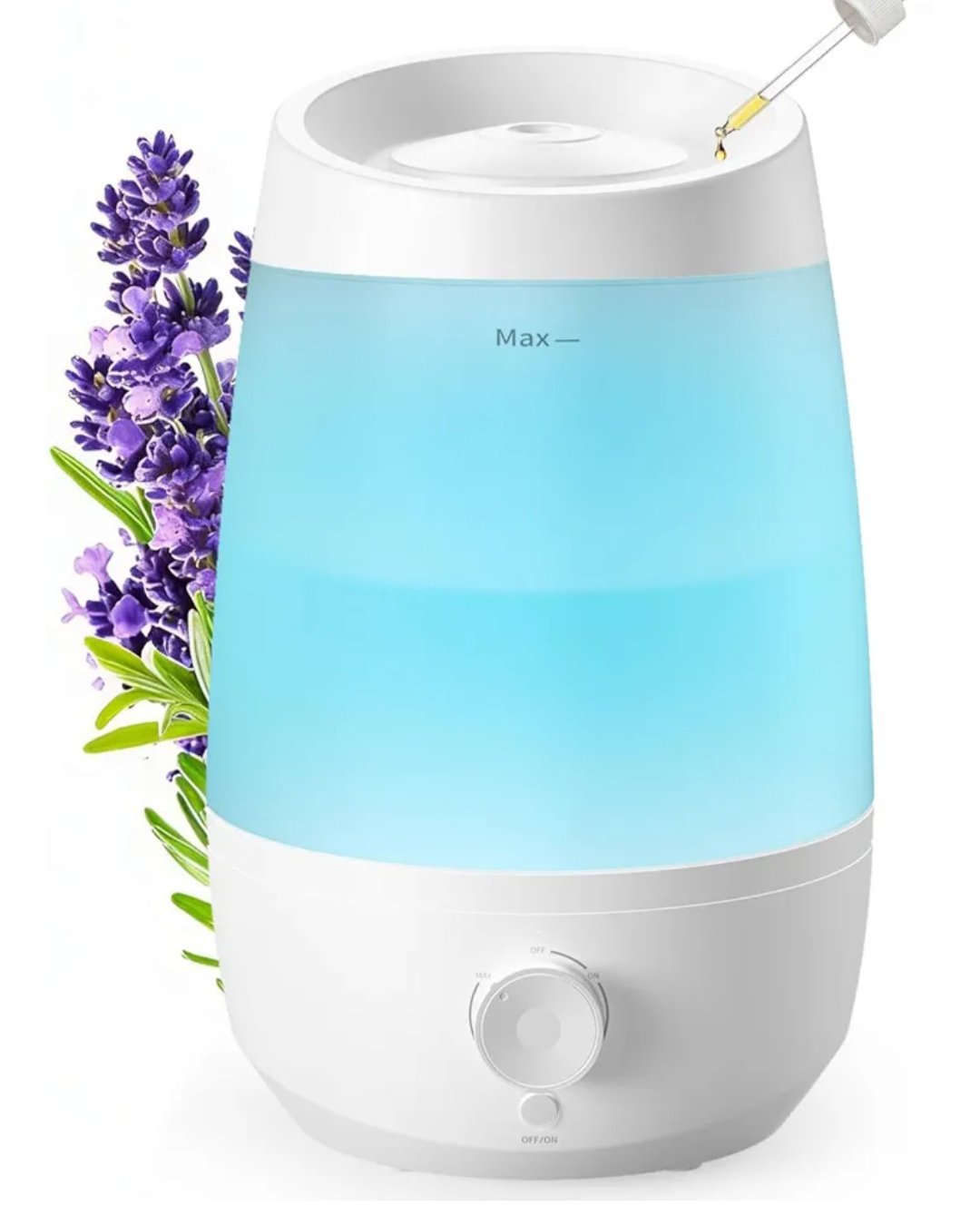 Hidratación duradera: El humidificador cuenta con un gran depósito de agua de 2,5 L, que garantiza hasta 25 horas de funcionamiento continuo en el nivel más bajo. Con un caudal de humidificación de 250 ml/h.