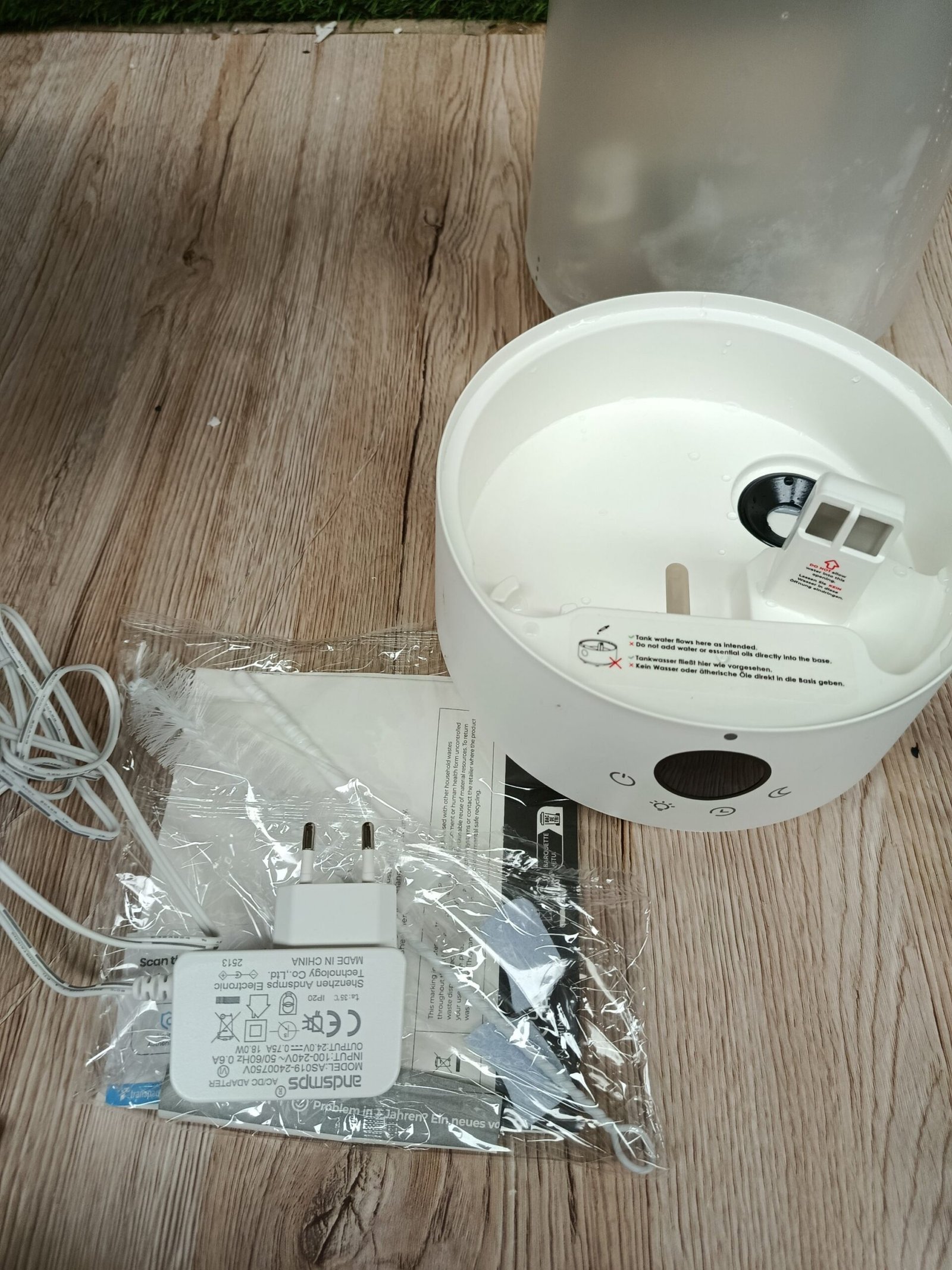 El potente humidificador ultrasónico de 1,7 MHz garantiza una distribución rápida y uniforme de una fina niebla de hasta 250 ml/h. En tan solo 20 minutos, la humedad relativa en una habitación de 15 m² aumenta un 12 %.
