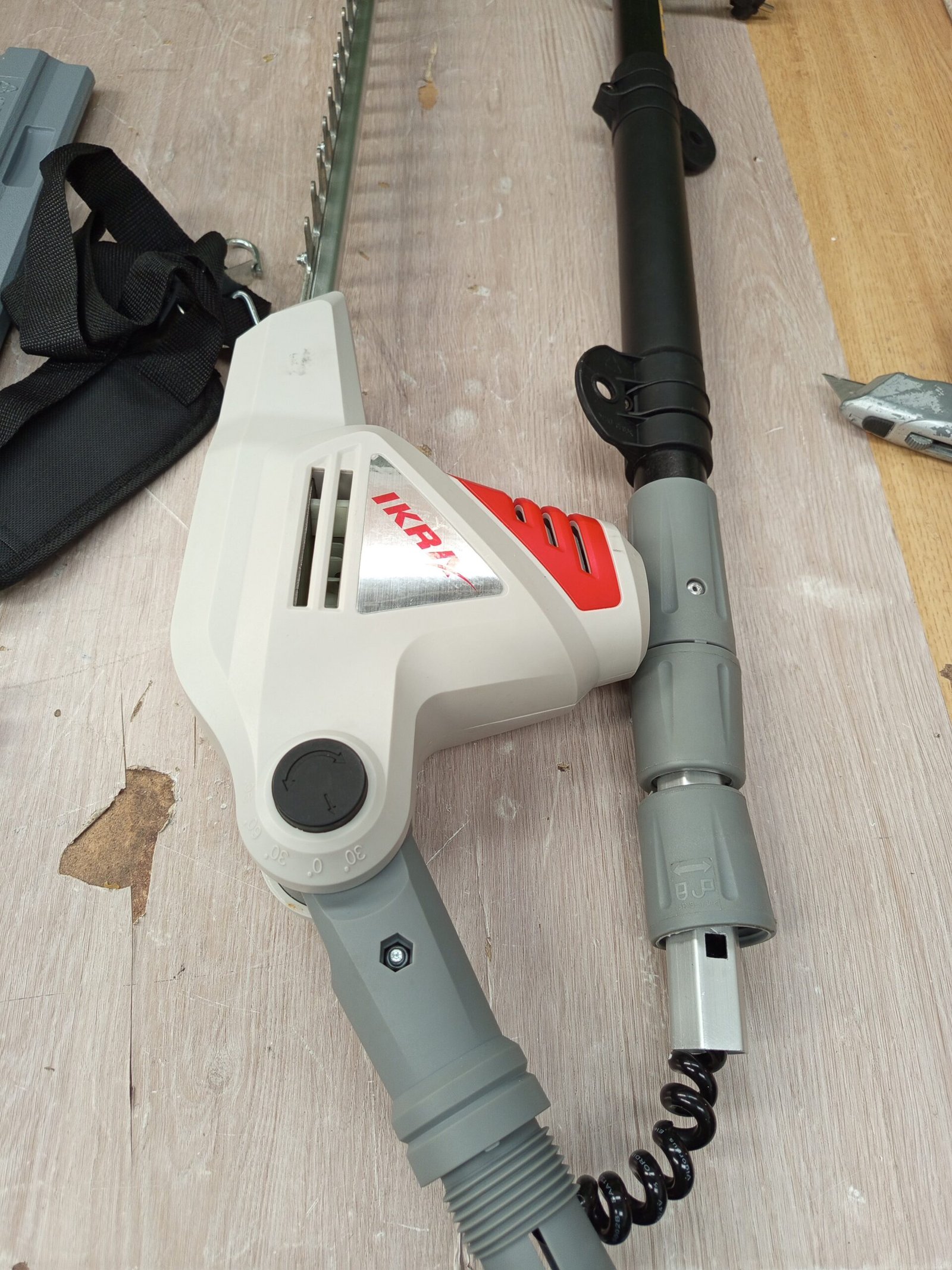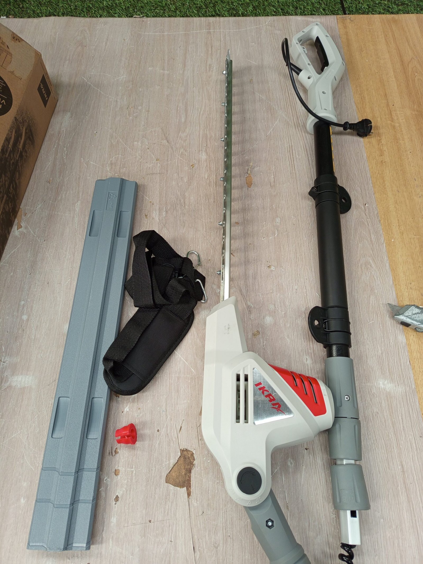 IKRA Tijeras Cortasetos telescópico eléctrico ITHS 600, Cinta de Hombro Incl, Longitud de Corte 51cm, 600W, 230 V