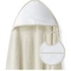 Interbaby – Capa de Baño Bebe Beige + Babero | Toalla Bebe con Capucha 100% Algodón, 100x100cm, Unisex | Suave, Cómoda, Ideal Recién Nacidos, Bebes y Niños Pequeños | Diseño Punto de Cruz Liso