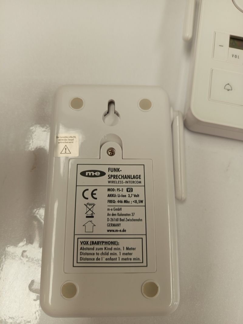 Intercomunicador inalámbrico m-e FS-2 V2 blanco | Alcance de 2000 m, 99 canales, función manos libres (VOX) | Sistema de intercomunicación inalámbrico para oficina, hogar y agricultura.
