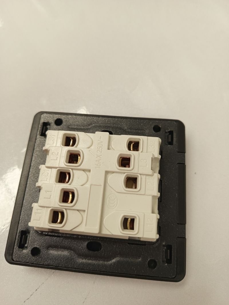 Interruptor de luz basculante con puntos de fósforo, interruptor de interruptor de encendido/apagado de cristal negro, 1 vía, 16 A, interruptor de triple luz, 3 bandas