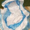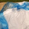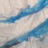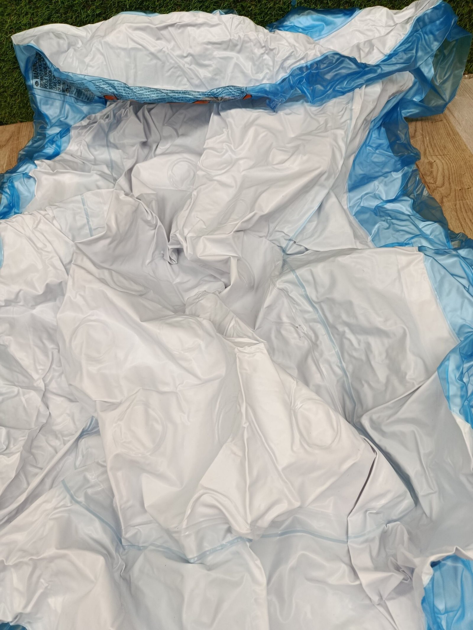 Piscina desmontable de forma rectangular fabricada con vinilo resistente, de color azul y blanca