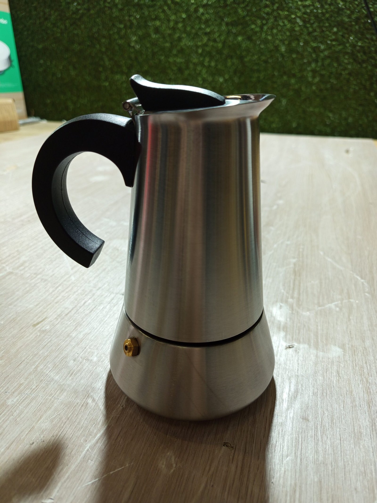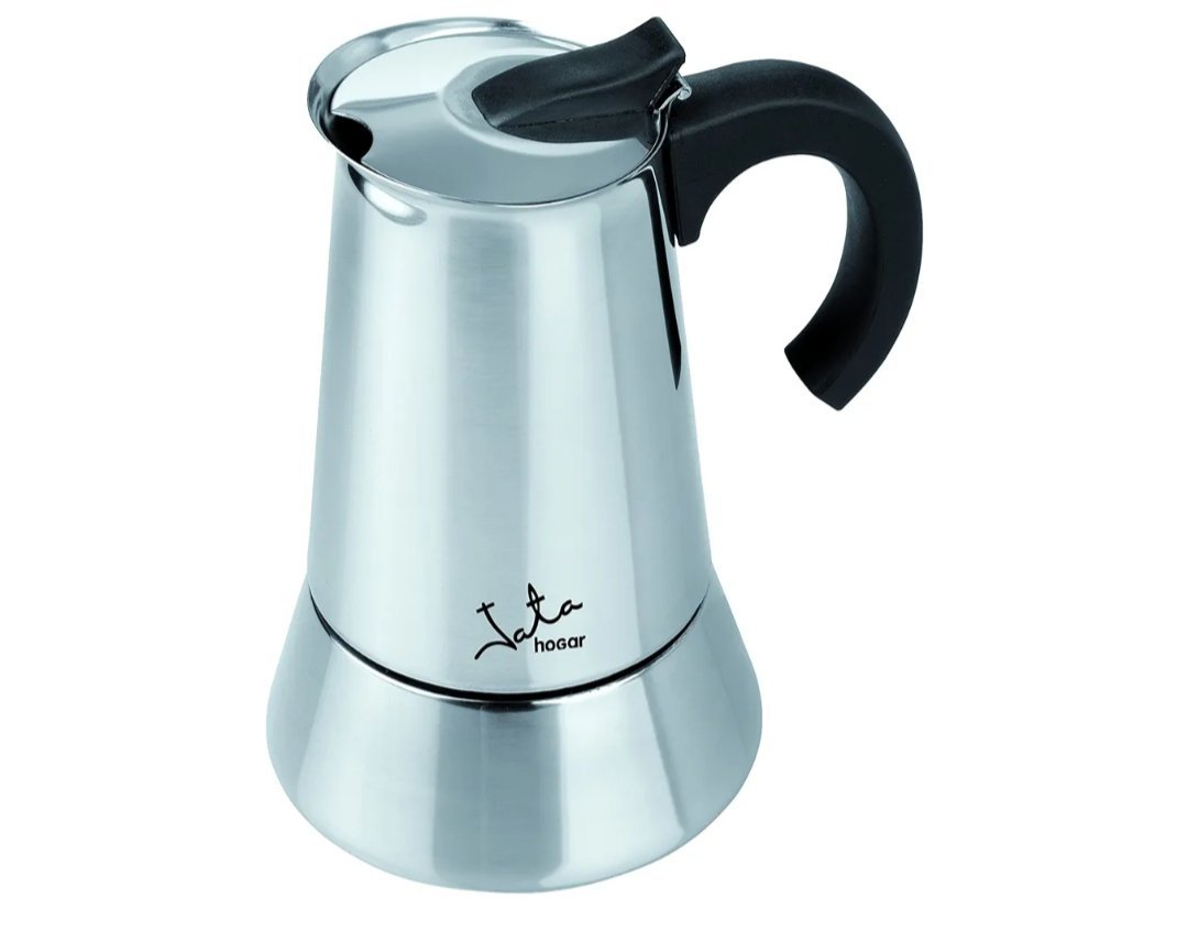 Jata – Cafetera Italiana Inducción, Capacidad 4 Tazas, Apta para Todo Tipo de Cocinas, Cuerpo Acero Inoxidable