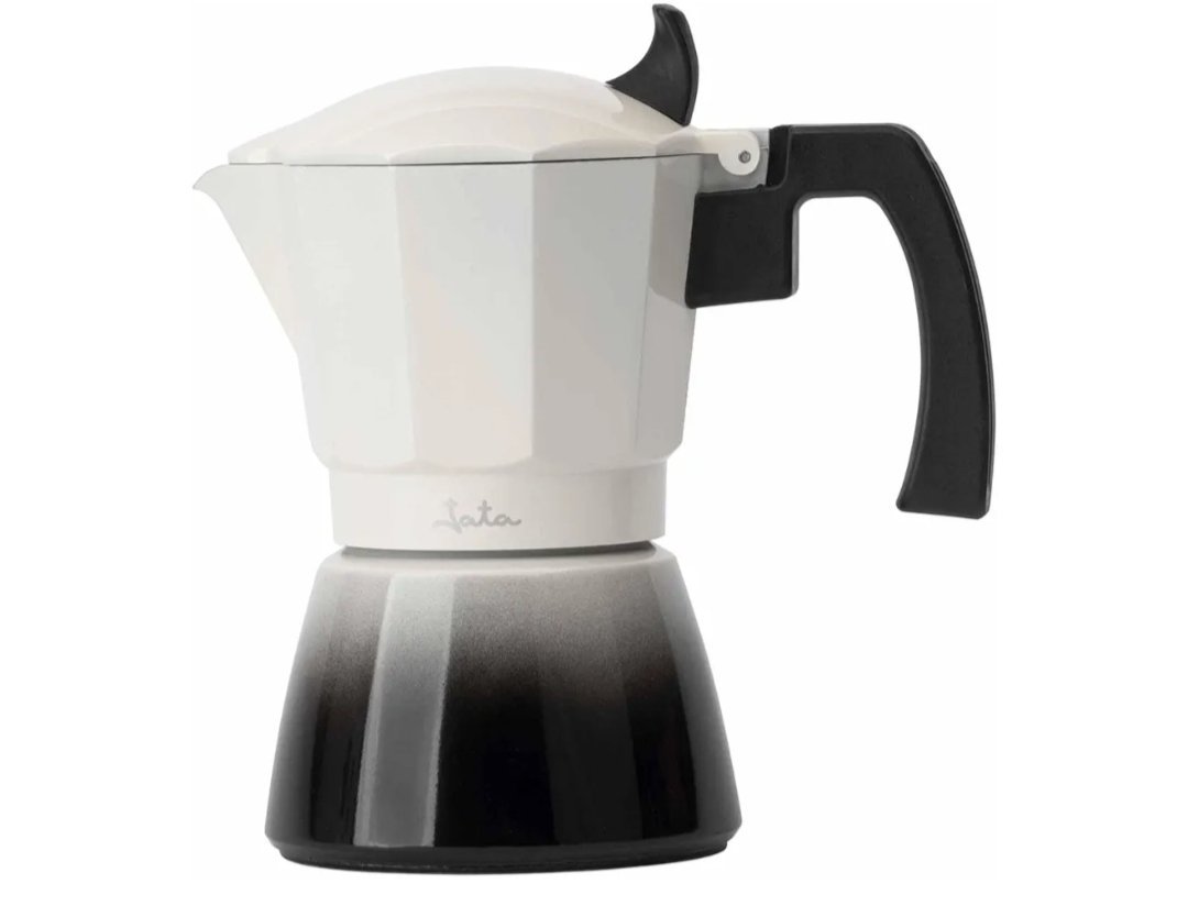 Jata Hogar – Cafetera Italiana Induccion. De Aluminio, 3 Tazas de Capacidad, Apta para Inducción, Vitrocerámicas y Cocinas de Gas. Mango Termorresistente. Fácil limpieza