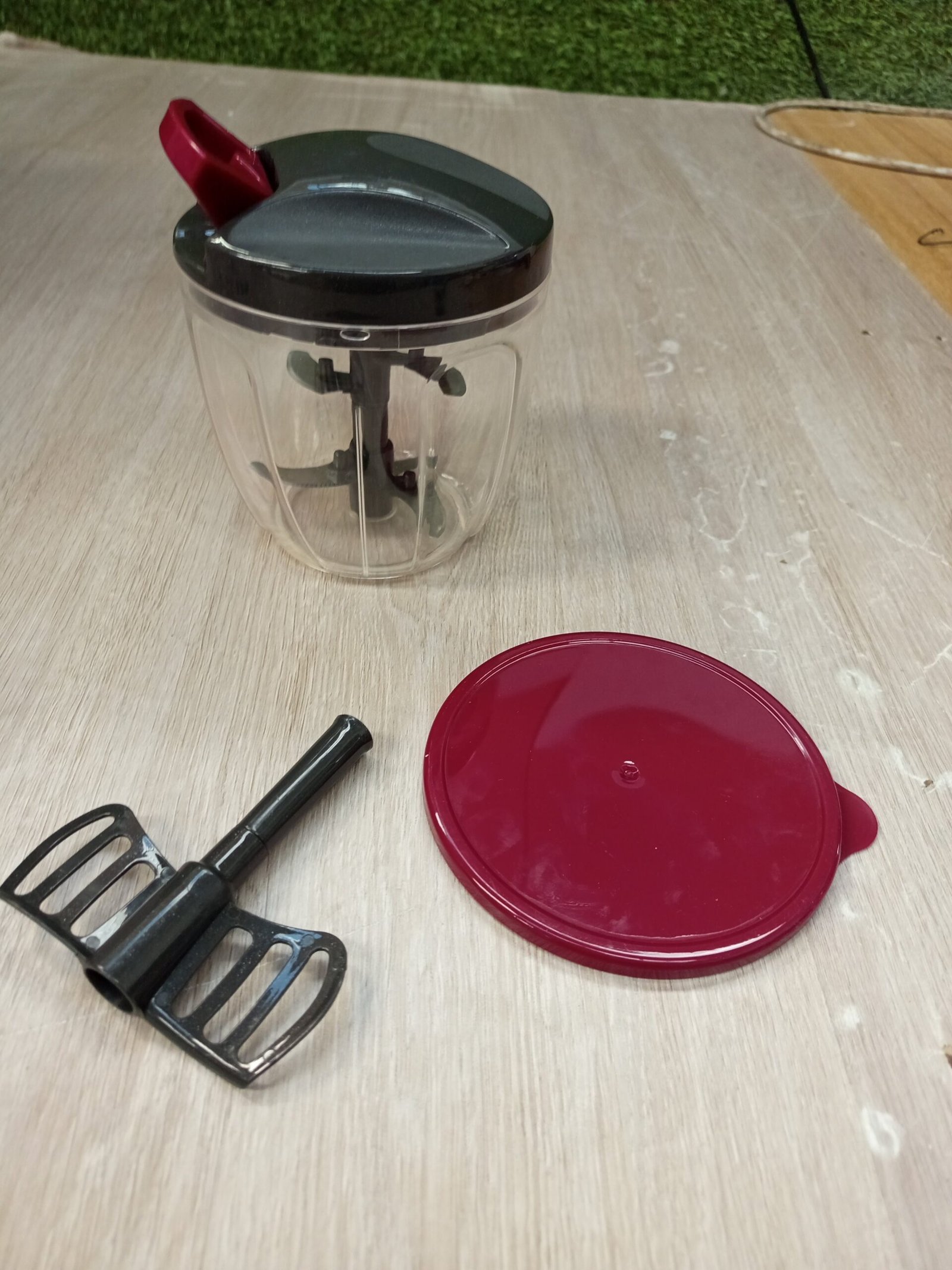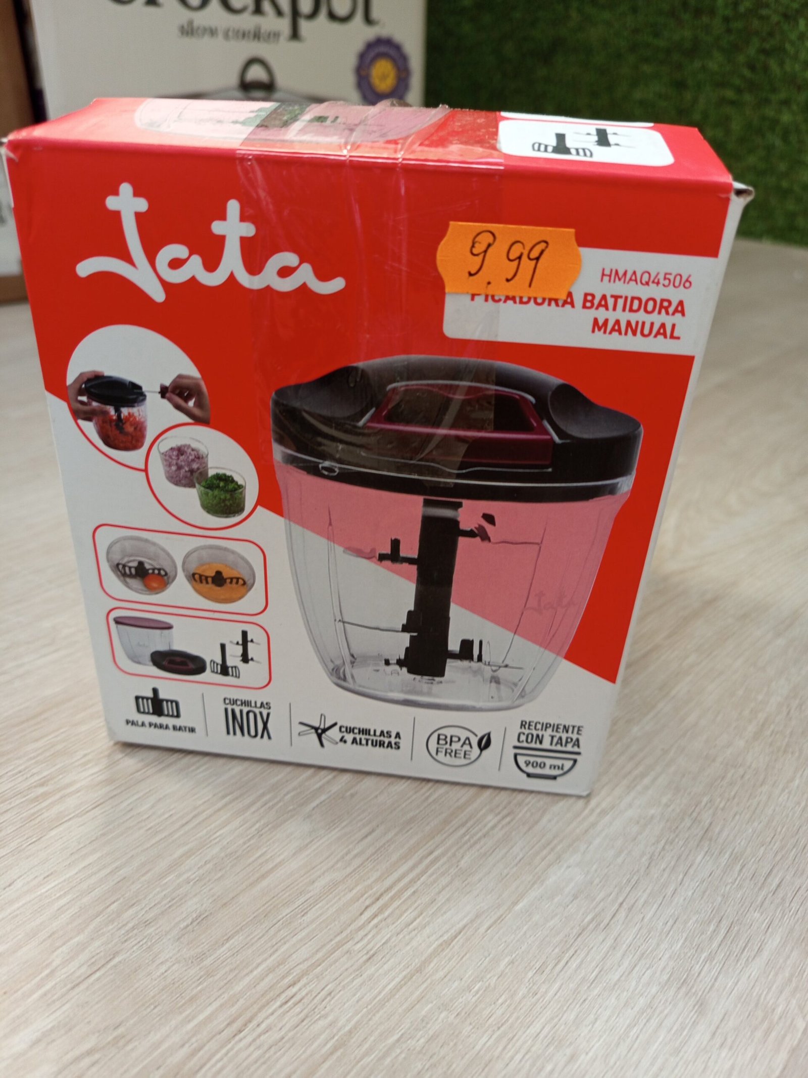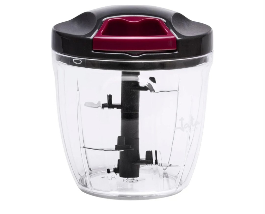 JATA HOGAR – Picadora Manual con Cuerda para todo tipo de Alimentos. 4 alturas de corte. Cuchilla de acero inox. 900 ml de capacidad. Incluye tapa y pala para batir