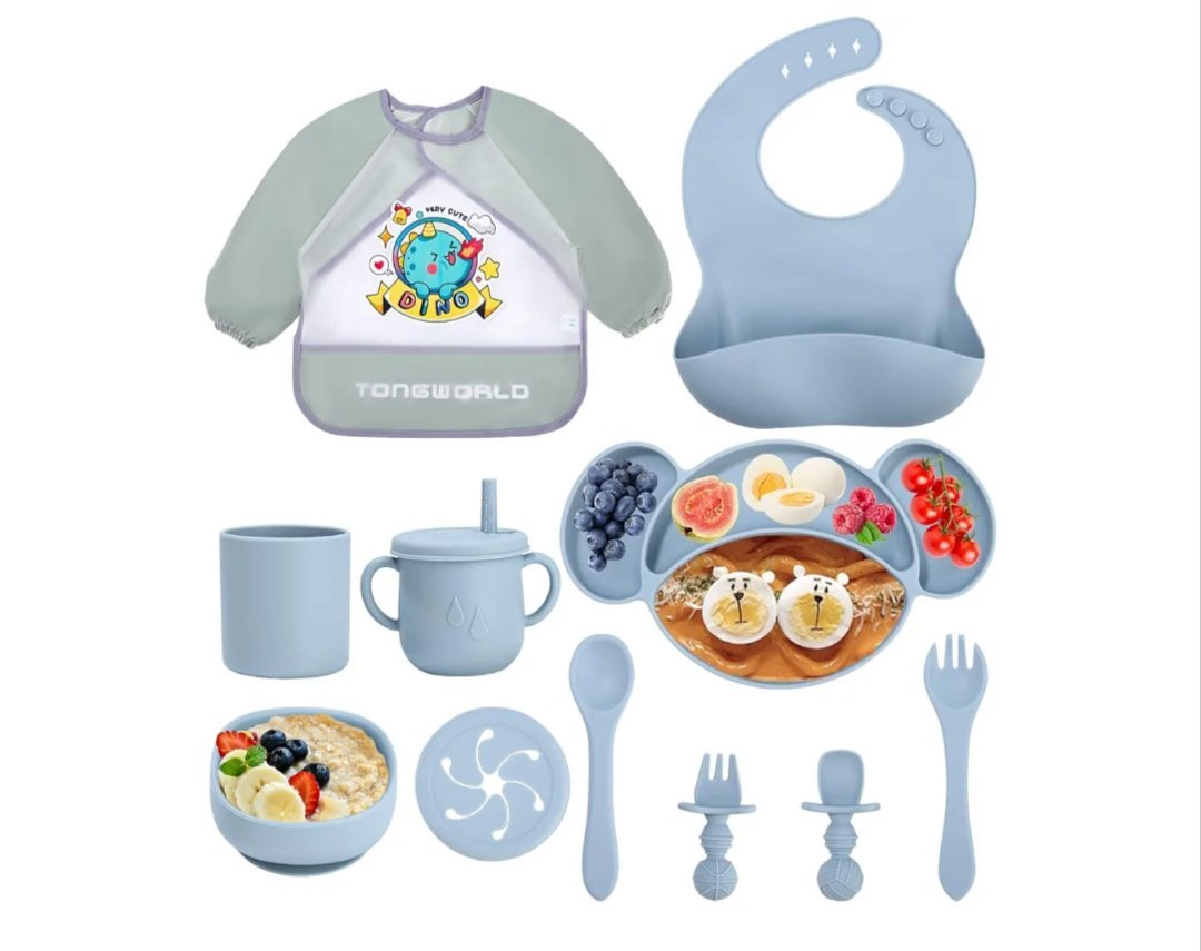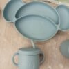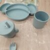 la vajilla para bebés está fabricada con silicona de alta calidad, supersuave y apta para alimentos, sin bisfenol A, inodora y respetuosa con el medio ambiente.