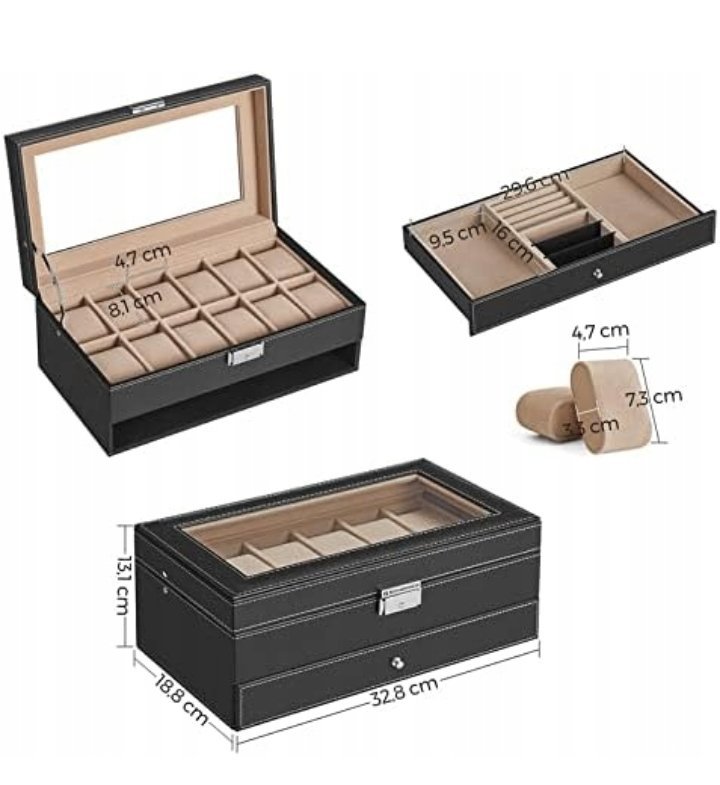 Joyero/organizador Songmics JWB012V1 32,5 x 19,5 x 11,5 cm negro
