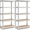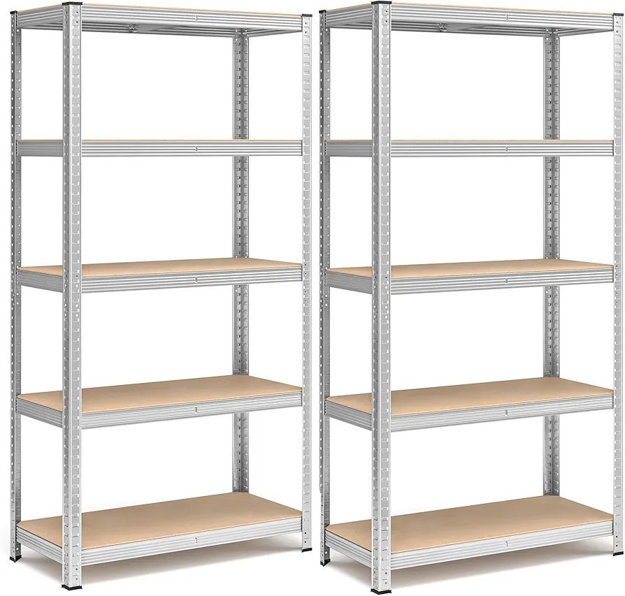 SONGMICS Juego de 2 Estanterías Almacenaje de 5 Niveles, Estantería Metálica, Modular, Garaje, Almacén, Trastero, Cocina, Carga de 875 kg, 40 x 90 x 180 cm, Plata GLR040E02