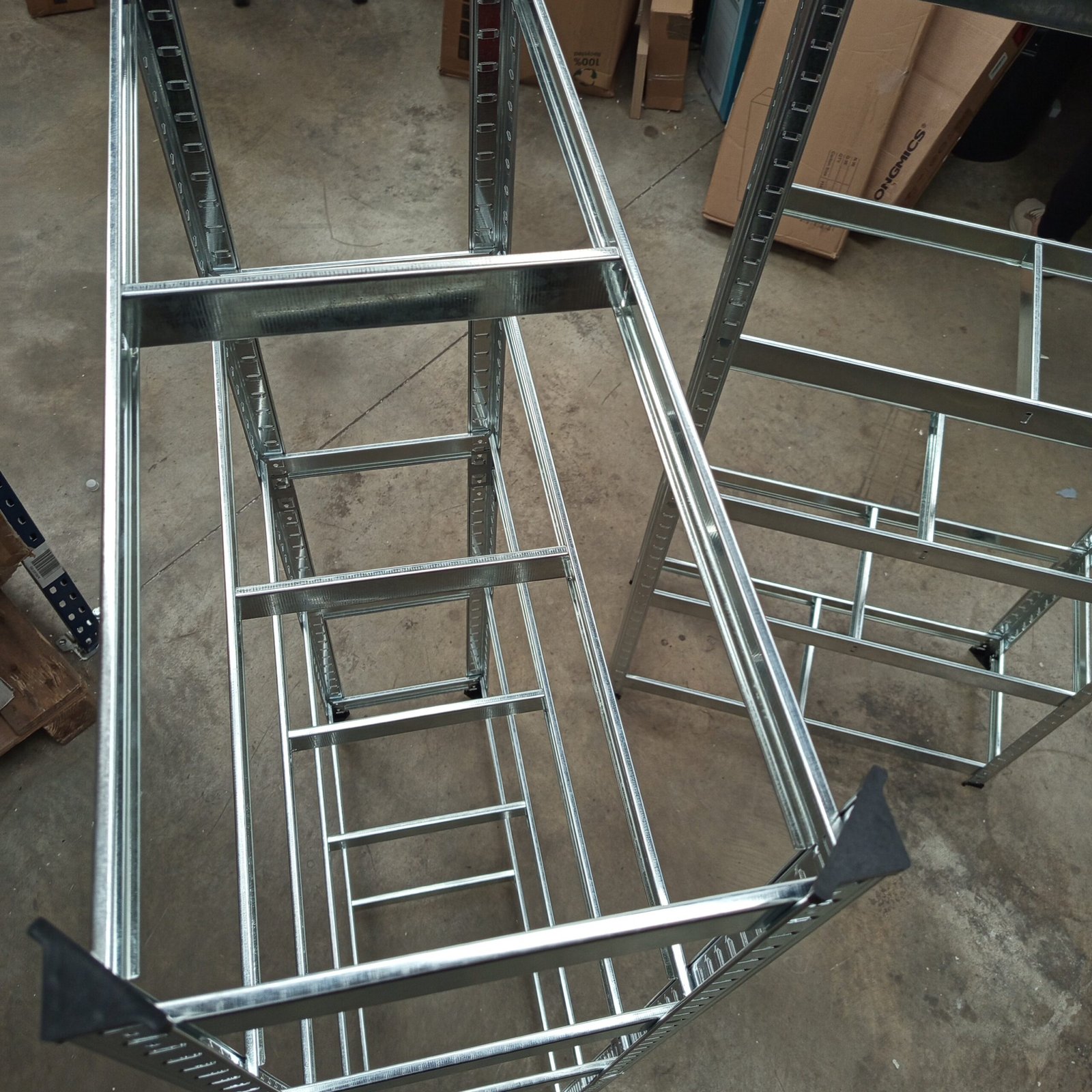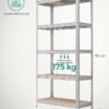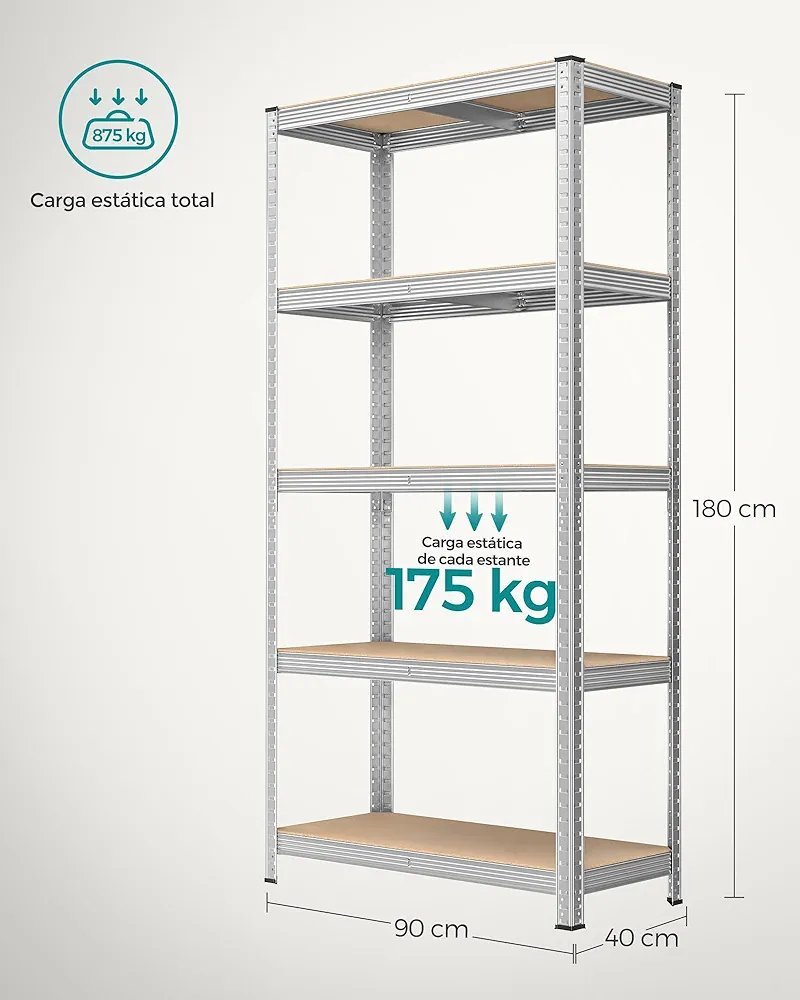 La estantería pesada está hecha de un marco de acero, y cada estante puede soportar hasta 175 kg. El dispositivo de fijación incluido puede fijar la estantería a la pared, haciéndola más estable y segura