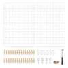 Un pequeño ayudante para todas tus ideas: varios accesorios hacen que las placas de rejilla sean un verdadero punto de atracción: 6 ganchos en forma de S para llaves o mini juguetes, 30 clips para billetes, notas y postales y 1 cuerda de cáñamo para colgar cuadros que te recuerdan los viejos tiempos.