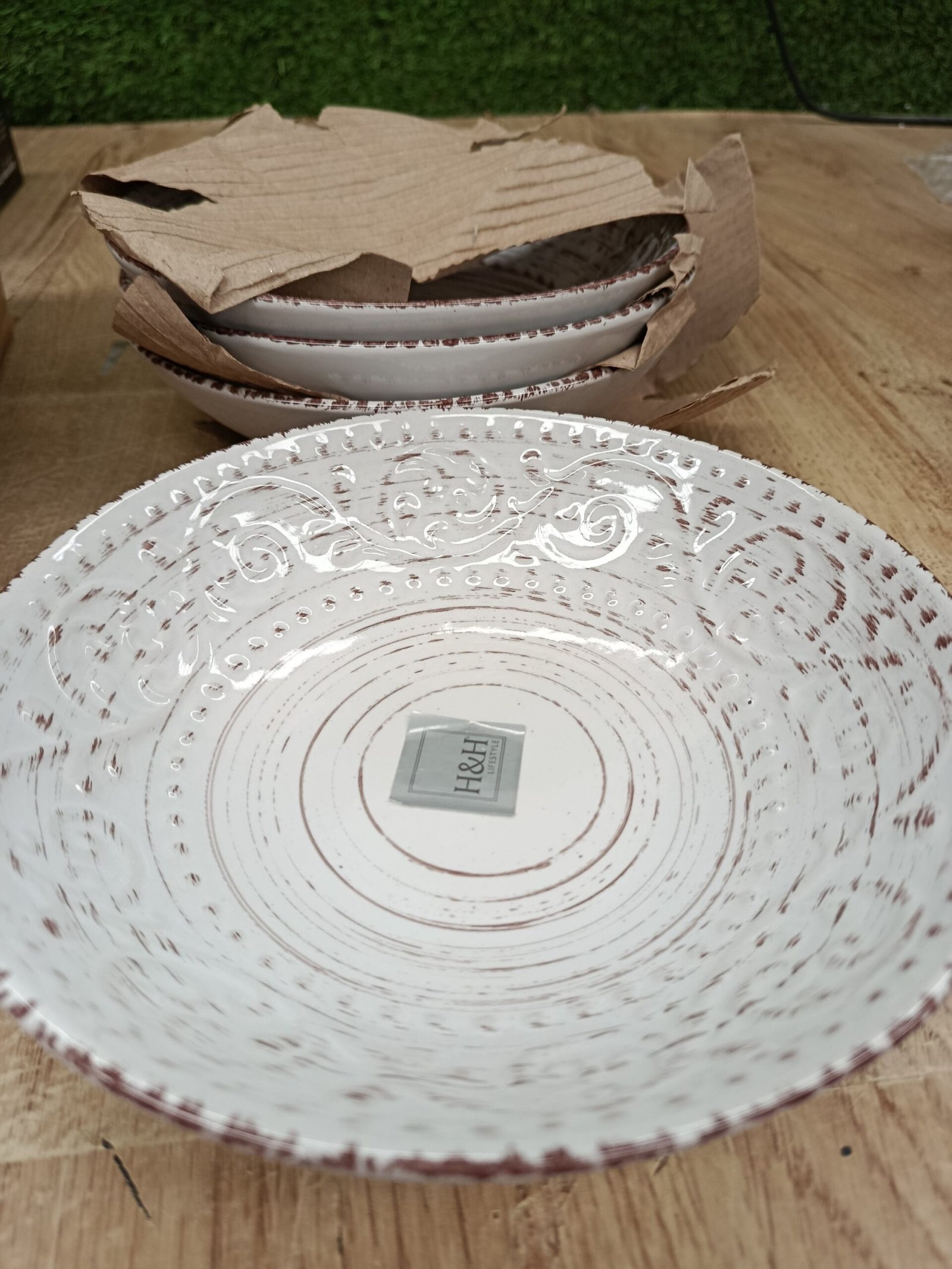 Juego de 4 platos hondos blancos Courtyard de H&H de 20 cm