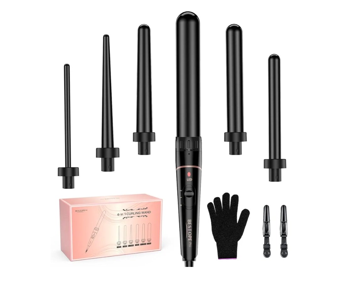 Juego de rizadores con diferentes accesorios – BESTOPE PRO Juego de rizadores 6 en 1 para rizos grandes y pequeños, rizador de cerámica con guantes