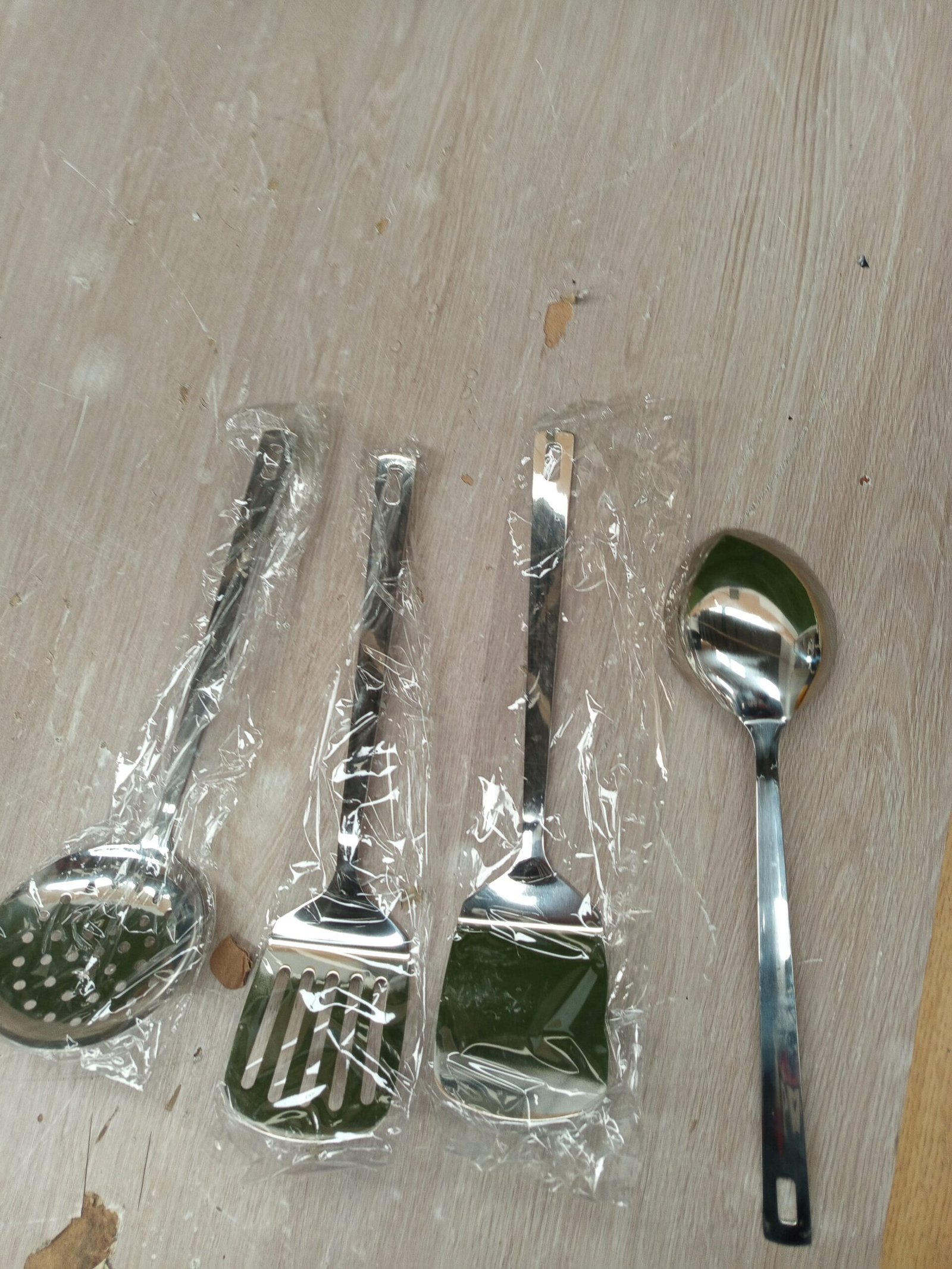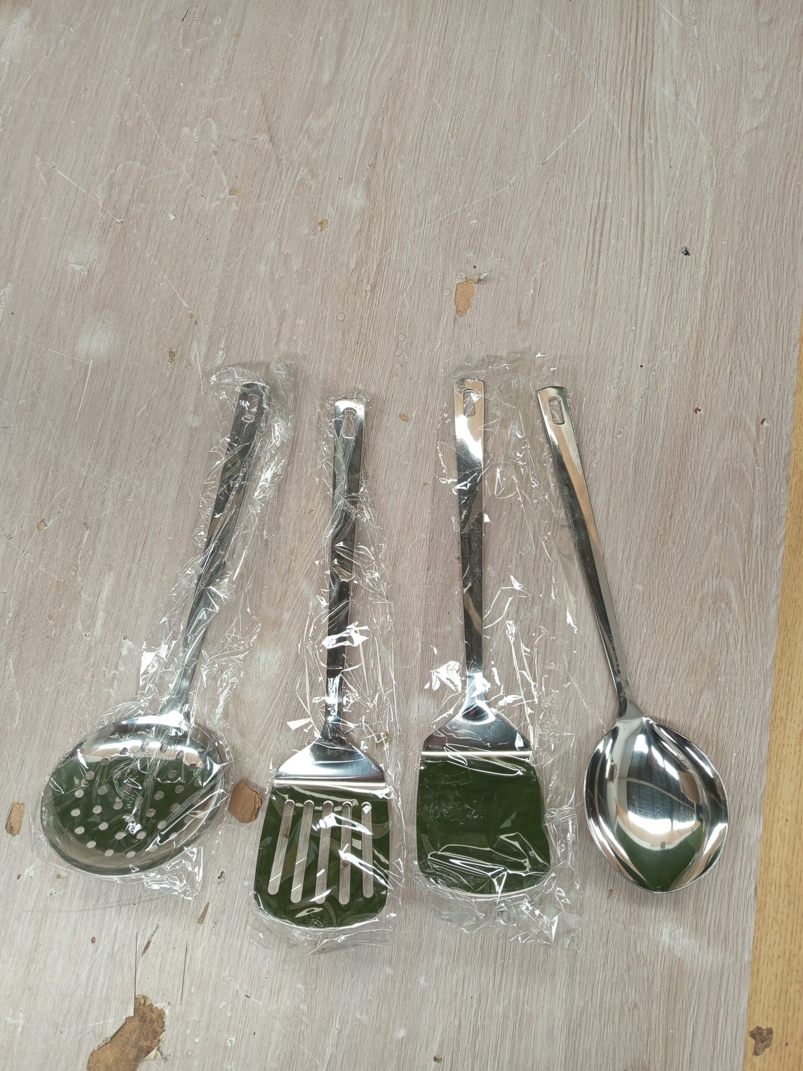 Este juego de utensilios de cocina incluye 4 piezas esenciales, a saber, un volteador ranurado, un volteador sólido, una espumadera y un cucharón