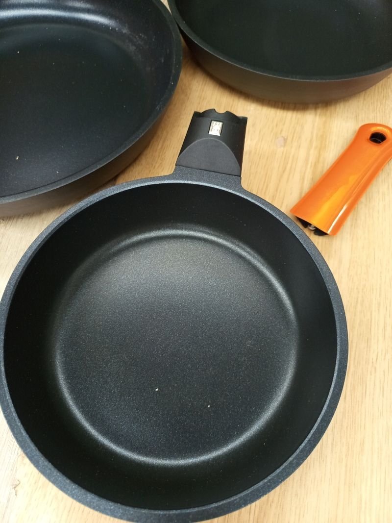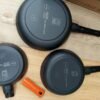 SET DE SARTENES: Incluye 3 sartenes de 18 cm, 22 cm y 26 cm de diámetro, elaboradas con materiales de gran calidad, que podrás lavar fácilmente en el lavavajillas