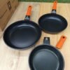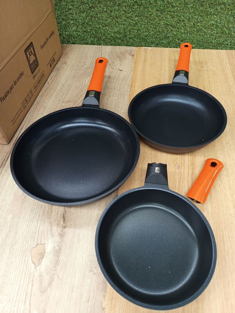 BRA Efficient Orange Juego de 3 Sartenes de Aluminio Fundido, 18/22/26 cm de Diámetro, Antiadherente y 100% Libre de PFOA, para Todo Tipo de Cocinas, Aptas para Lavavajillas