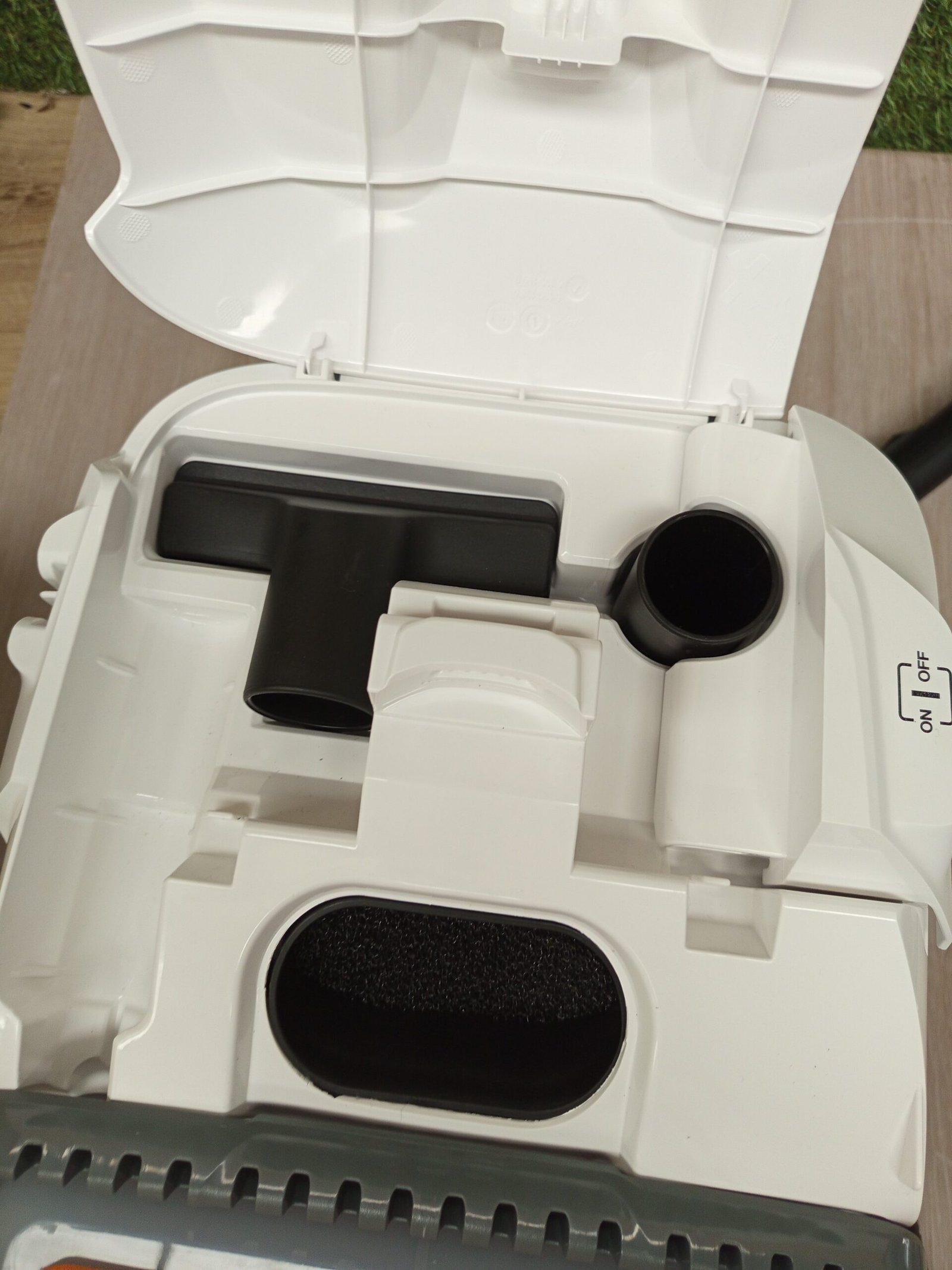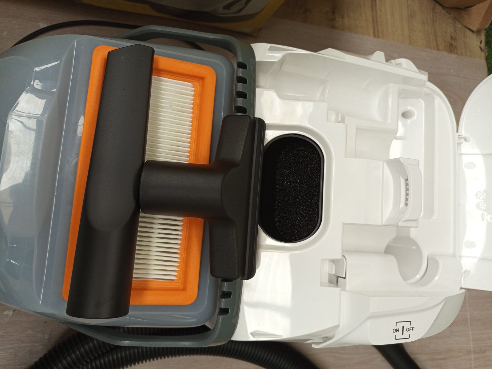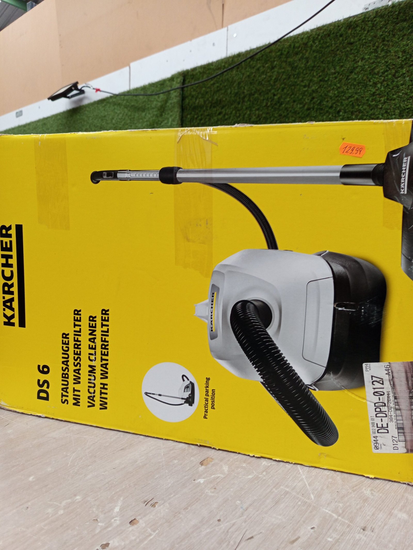 Práctica posición de estacionamiento: la aspiradora de agua DS 6 puede reposar cómodamente y de forma compacta en la posición de estacionamiento durante breves interrupciones y para su almacenamiento