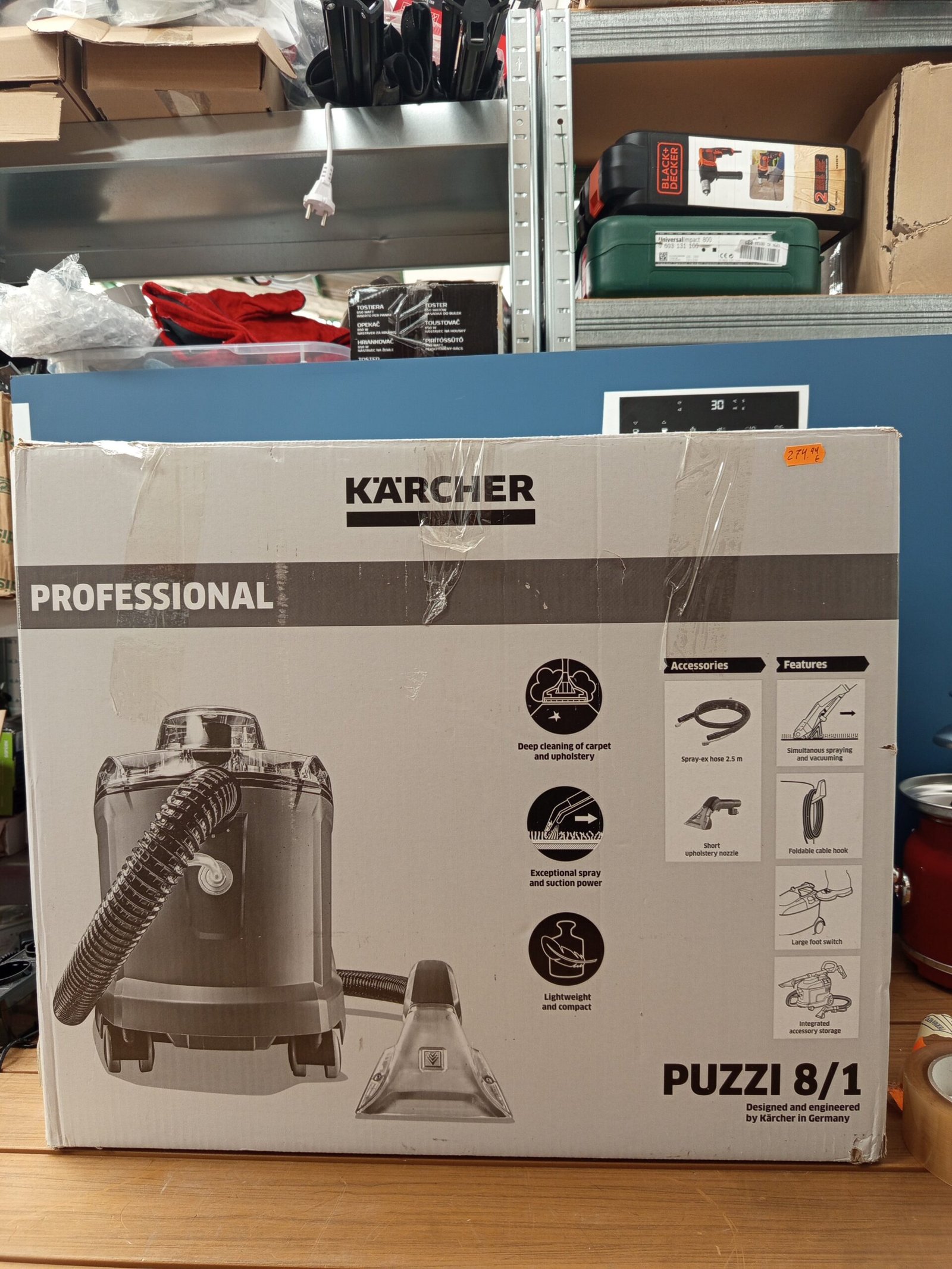 Kärcher Lava-aspiradora Puzzi 8/1, para tapicerías y superficies textiles, depósito: 8 l, caudal de pulverización: 1 l/min, superficie: 12-18 m²/h, peso: 8,6 kg, boquilla para tapicerías Limpieza profunda de fibras: La lava-aspiradora Puzzi 8/1 es ideal para eliminar manchas y limpiar tapicerías, asientos de vehículos, sillas de oficina, alfombras y otras superficies textiles