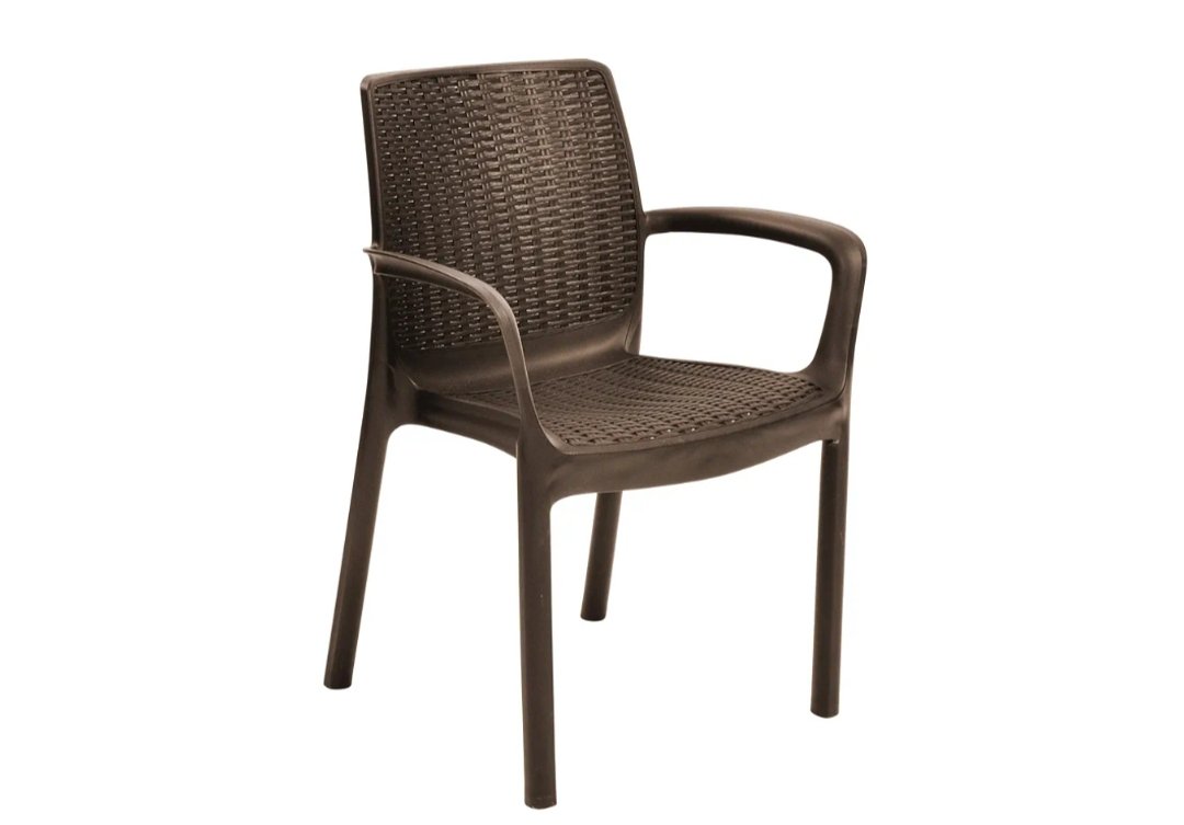 Keter Bali – Pack X3 Silla jardín para Interior y Exterior con reposabrazos Ideal para Jardines y terrazas, apilable, Resina con Acabado de ratán Plano, Color Marrón