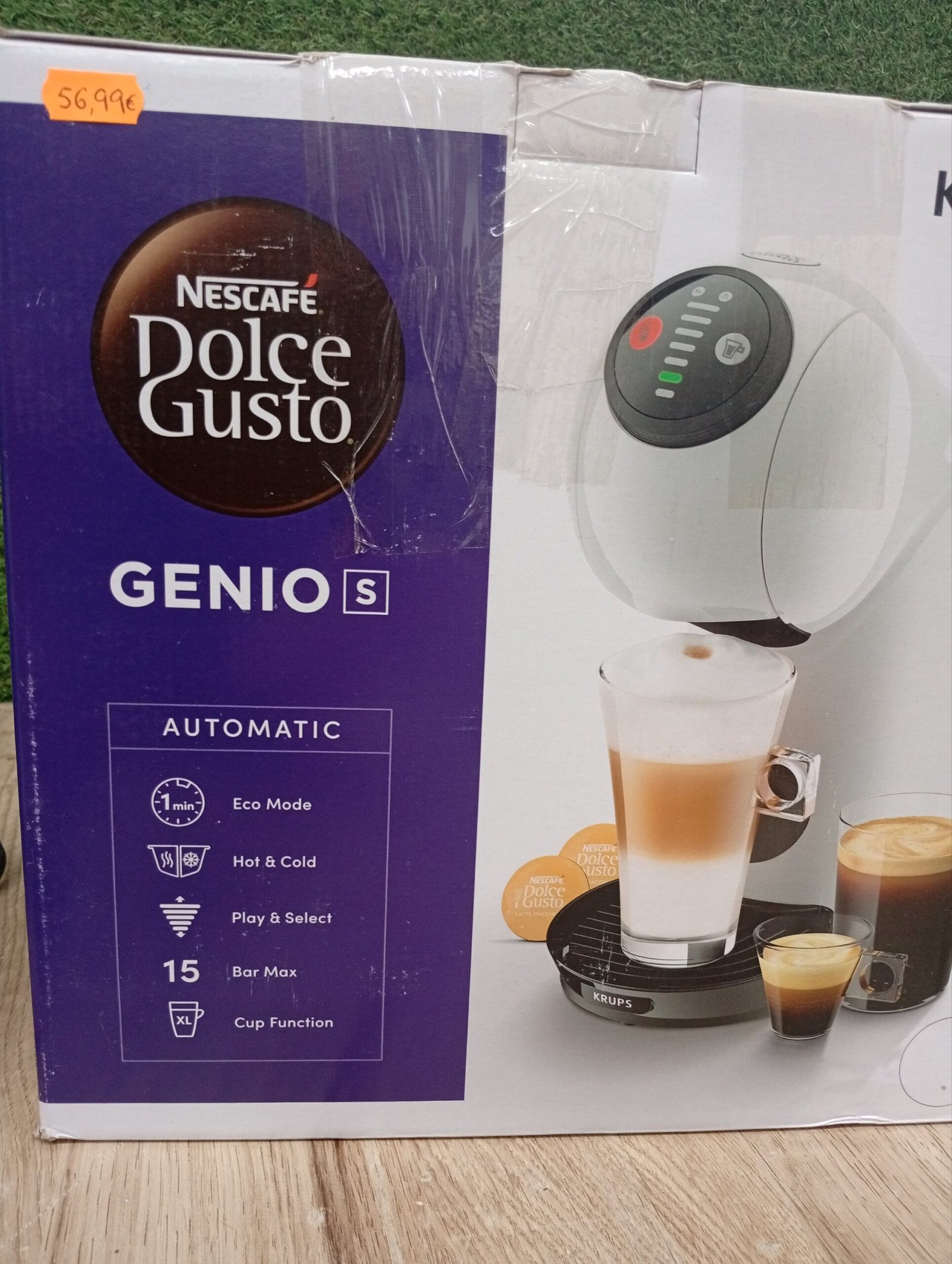 Krups Nescafé Dolce Gusto Genio S, cafetera de cápsulas para bebidas frías y calientes, Depósito de agua de 0.8 L, modo Eco, Thermoblock, apagado automático, blanco