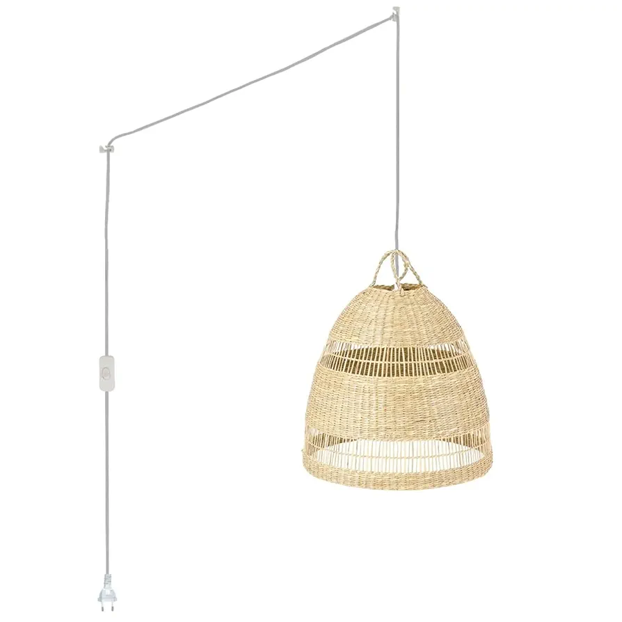La lámpara colgante «Ikken», de estilo bohemio, es una pieza única y artesanal, fabricada en fibras de mimbre resistentes y duraderas.