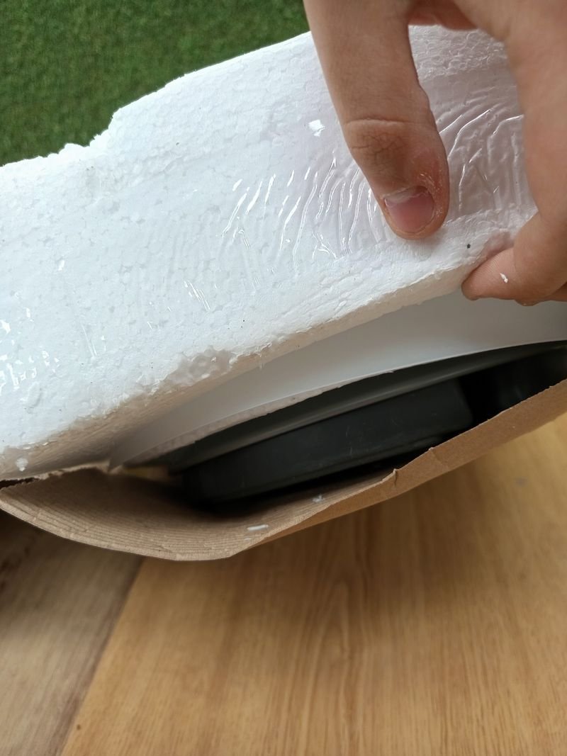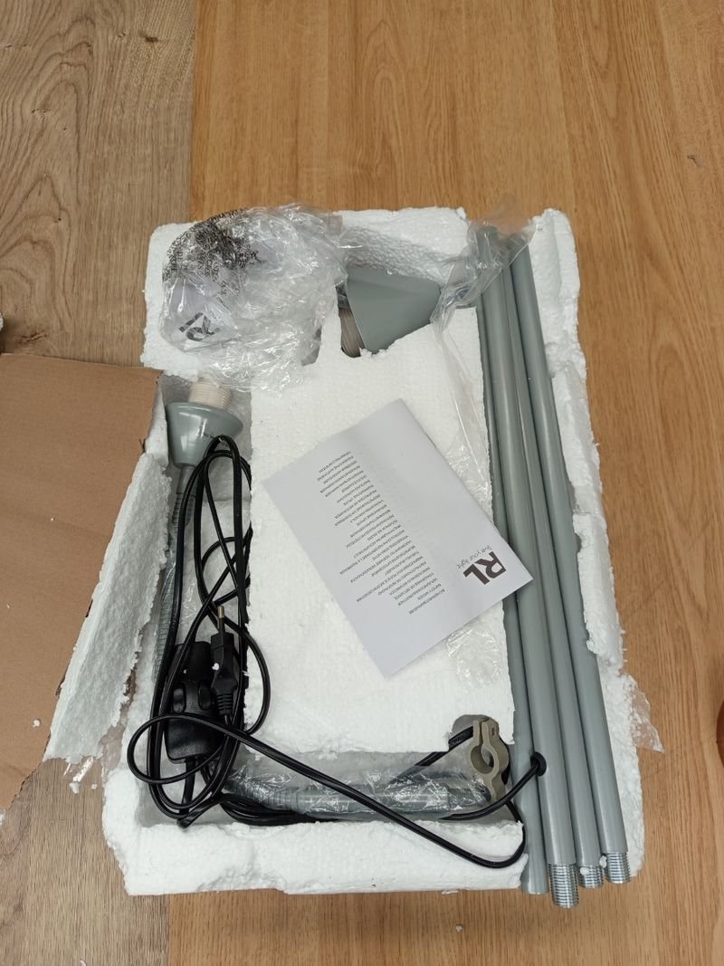 Material: cuerpo de metal gris – pantallas de plástico blanco