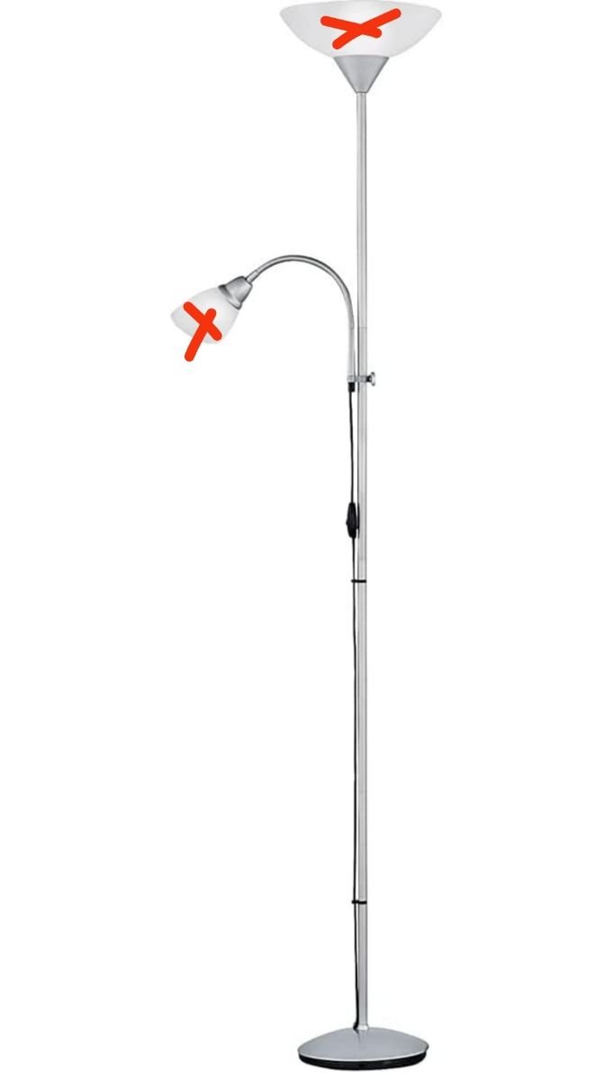Fuentes de luz conmutables por separado: luz principal a través del interruptor de pie – Lámpara de lectura mediante interruptor de cable