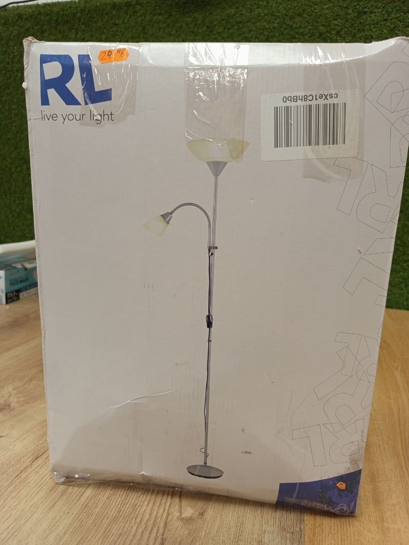 Elegante lámpara de pie LED – Lámpara de pie con luz de lectura flexible, metal plateado, pantallas en blanco