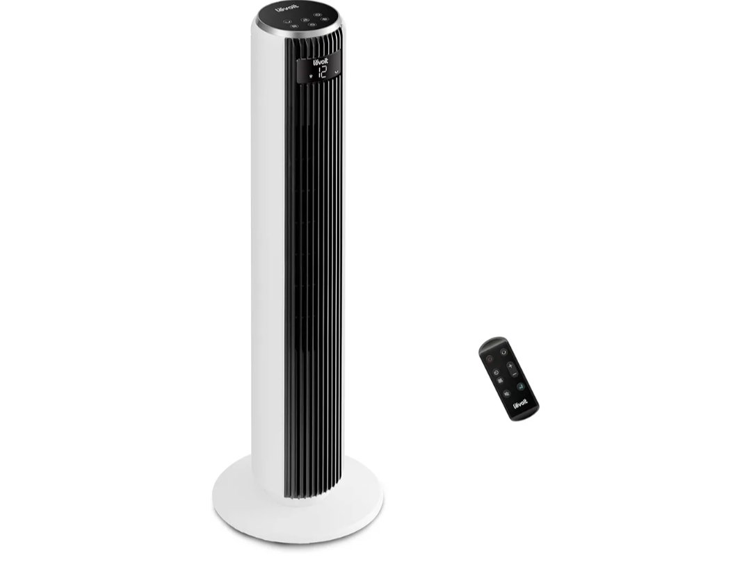 LEVOIT 20dB Ventilador de Torre con Mando a Distancia, 7.9m/s con Motor DC, 26W Ventilador Silencioso con Modo Reposo, 4 Modos y 12 Velocidades, Temporizador 12H, Pantalla LED, Oscilación 90°, Blanco