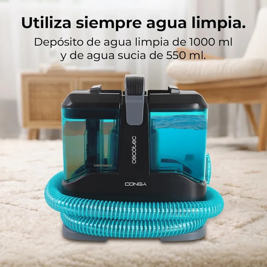 Cecotec Limpiador Aspirador de Tapicerias y Alfombras con Cable Compacto Conga 3000 Carpet&Spot Clean X-Treme. 450W, 13kPa, Depósito de Agua Limpia 1000ml y Agua Sucia 550ml, Spray Pulverizador