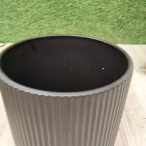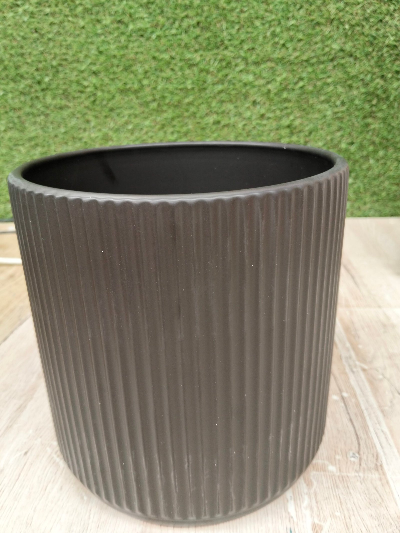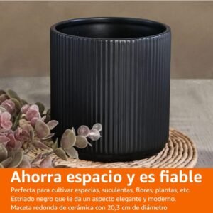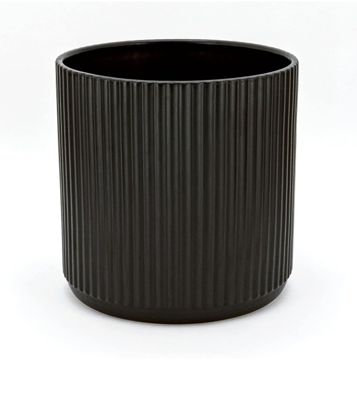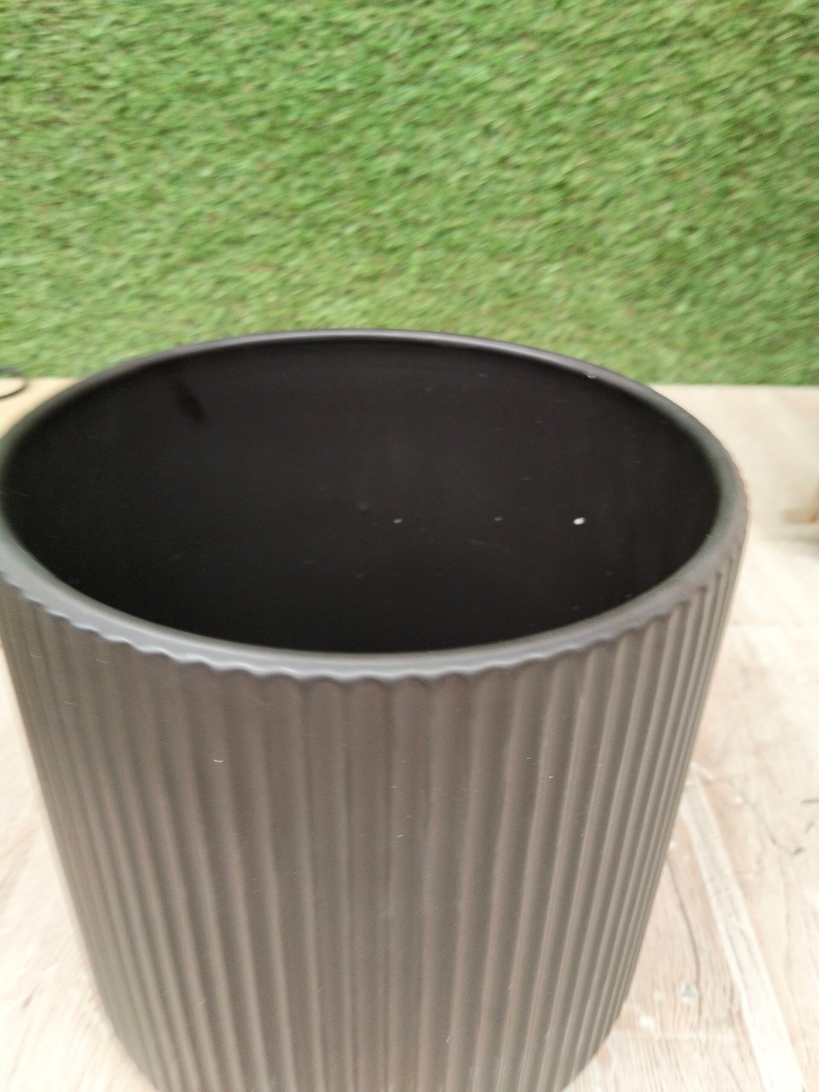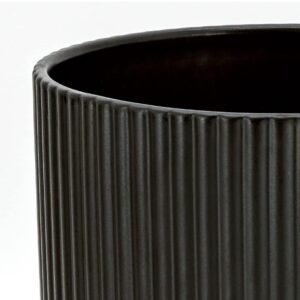 Amazon Basics Redondo Maceta de cerámica, estriada, 20.3 cm, Negro