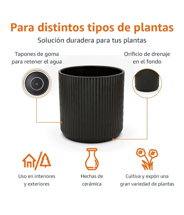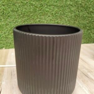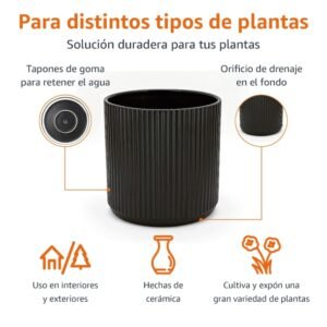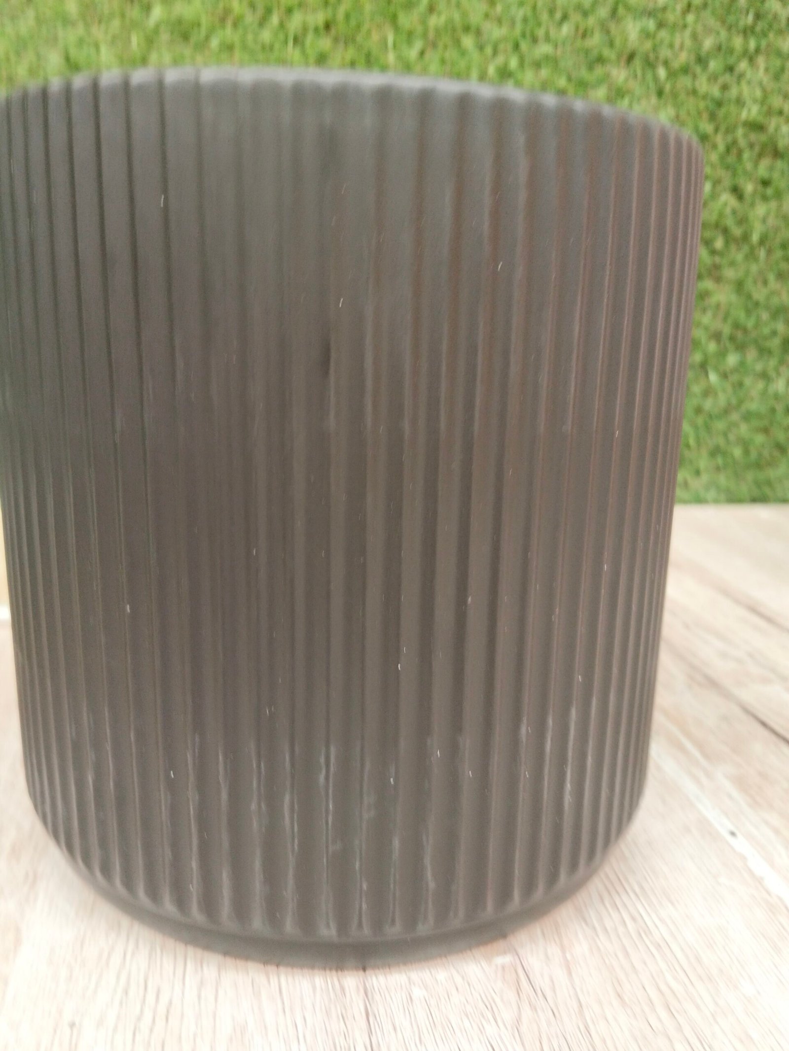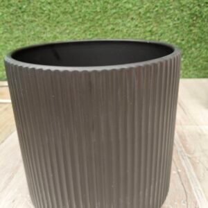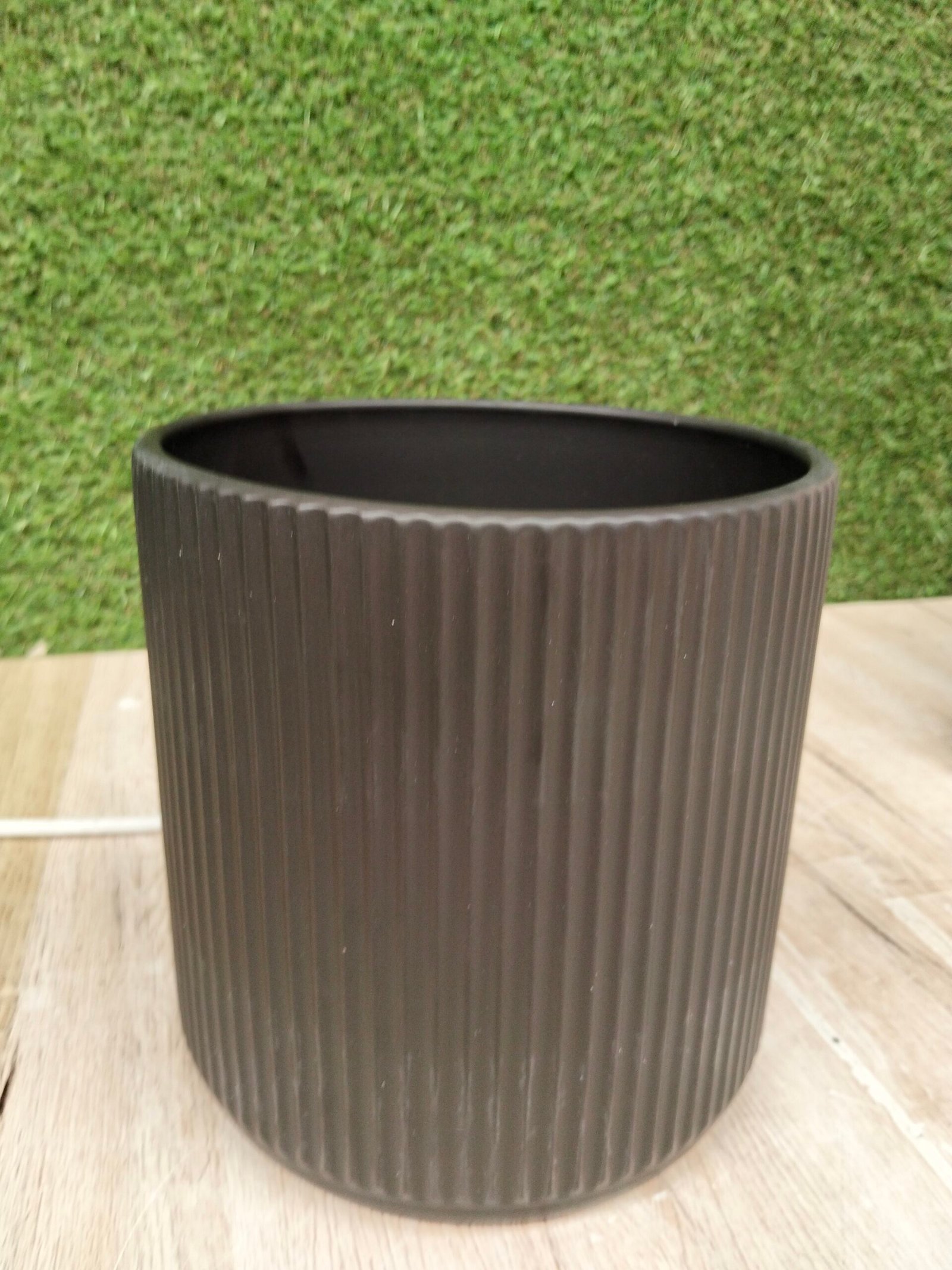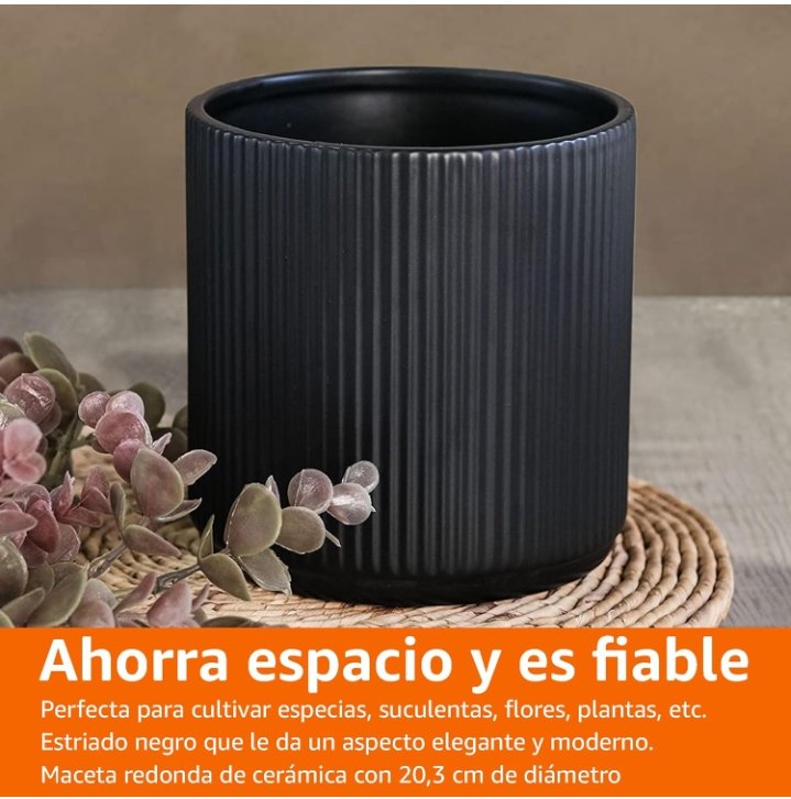 Amazon Basics Redondo Maceta de cerámica, estriada, 20.3 cm, Negro