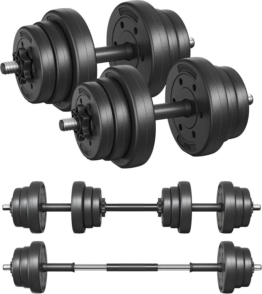 SONGMICS Mancuernas 2 en 1, Juego de Barra Corta, con Tubo de Conexión de Acero, Entrenamiento, Fitness, Levantamiento de Pesas para Casa, Gimnasio