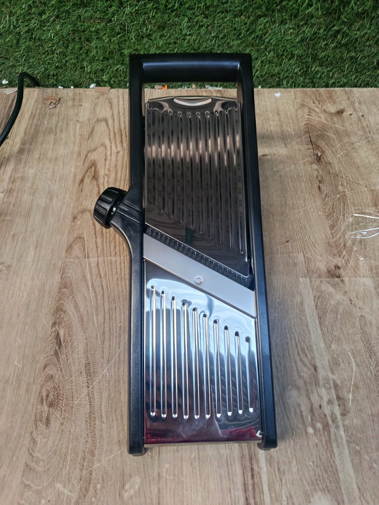 Mandolina Vegetal Profesional – Loncha de 1 a 9 mm de espesor. Dos opciones para ajustes en juliana: 4,5 mm y 9 mm.