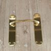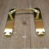 MICEL – 07078 – Juego de manilla para puerta con placa de acero ancha y maneta de aluminio, Acabado en latón satinado, Color dorado, 280 x 145 x 70 mm