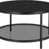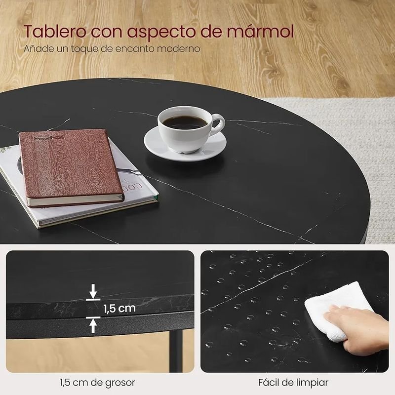 Una mesa de mármol negro, estante de vidrio templado brillante debajo, y elegantes patas de acero negro, todo es una mezcla perfecta diseñada para tu vida exquisita