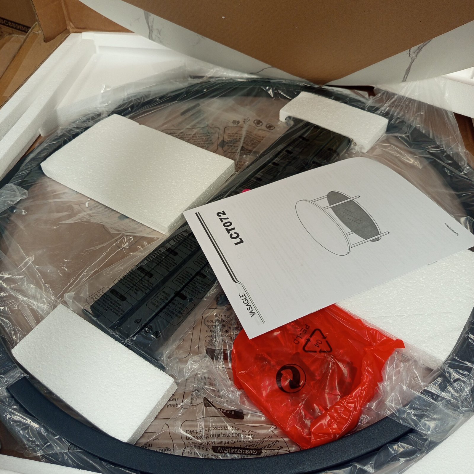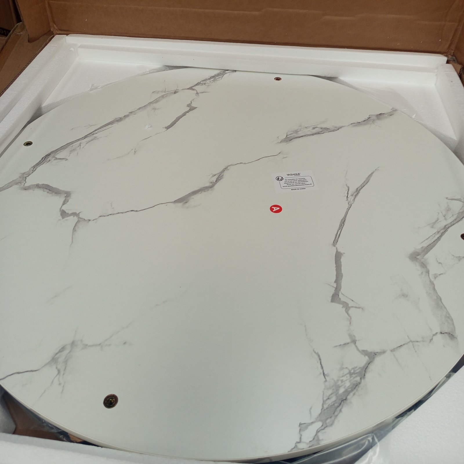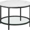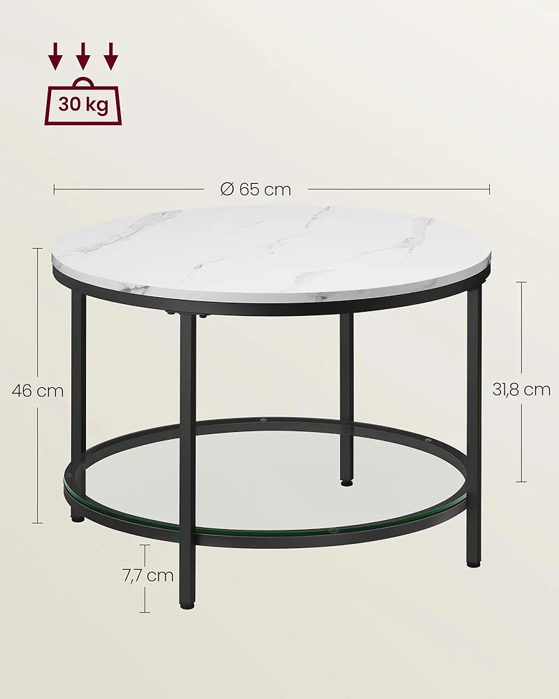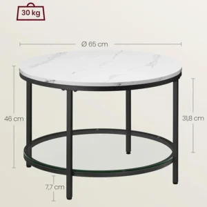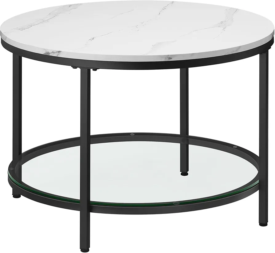 VASAGLE Mesa de Centro, Mesita de Salón, de Mármol de Imitación Redonda, Estante de Vidrio Templado, Montaje Fácil, Estilo Moderno, Blanco Mármol y Negro Tinta LCT072W13