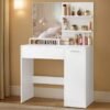 VASAGLE Kailyn Colección – Tocador, Mesa de Maquillaje, Gabinete con 2 Estantes Ajustables, 1 Cajón, 2 Estantes Abiertos, Estilo Moderno, Blanco RDT119W011