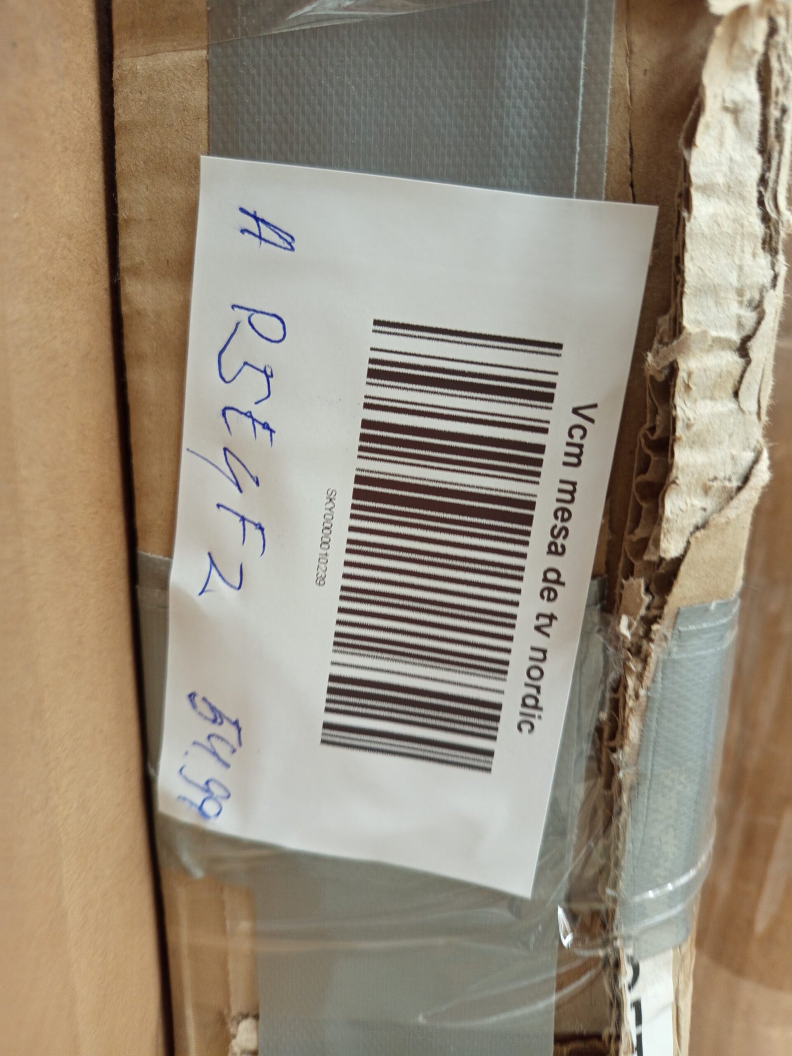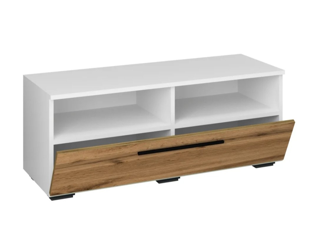 Mesa de TV VCM NORDIC Arila L, con 1 puerta y 4 compartimentos – blanca y madera natural (95×40)