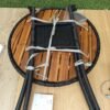 La superficie está hecha de madera maciza de acacia, una madera noble con vetas densas.