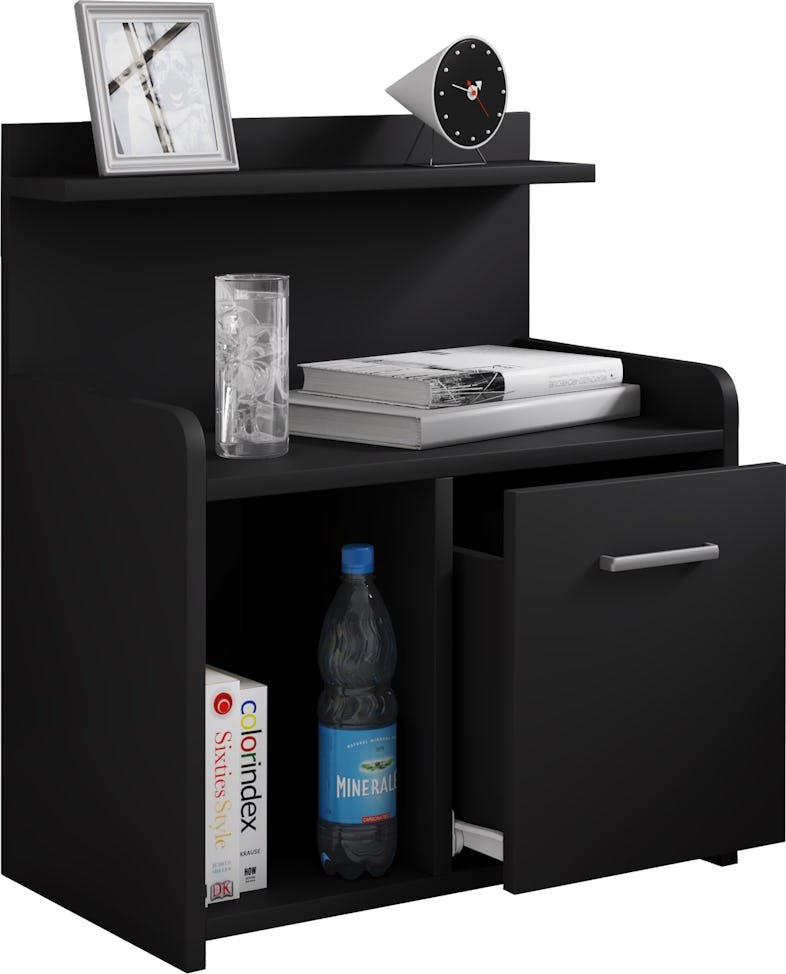El armario nocturno tiene un práctico cajón y un compartimento abierto para libros, gafas o mandos a distancia.