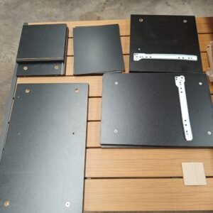 Mesa lateral de madera con un montón de opciones de almacenamiento y un estante extra alto