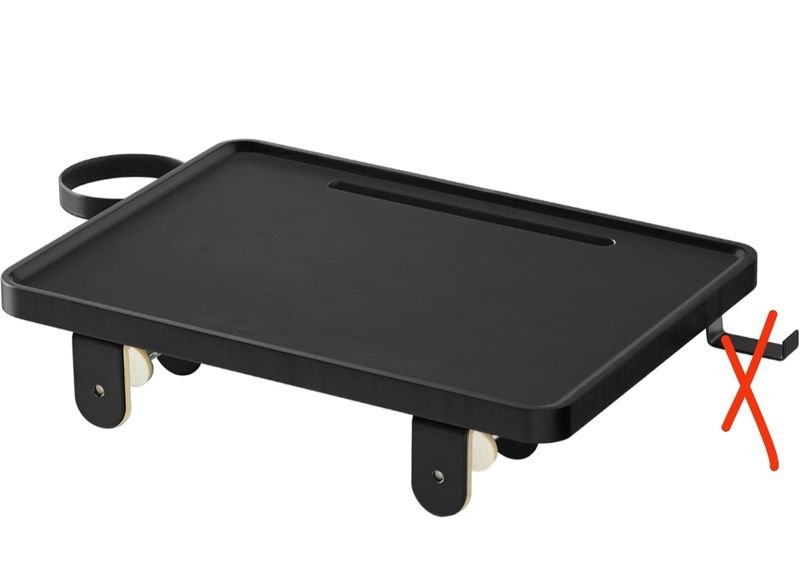 En la balda de 27 x 37,8 cm (Profundo x Ancho) cabe un portátil de 15 pulgadas; la ranura de móvil con orificios de cables es práctica para cargar aparatos eléctricos; el portavasos y el gancho lateral se giran y guardan hacia dentro