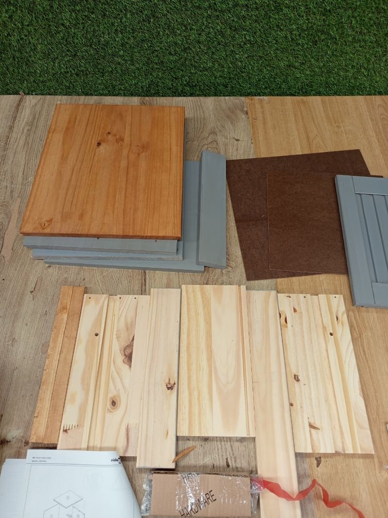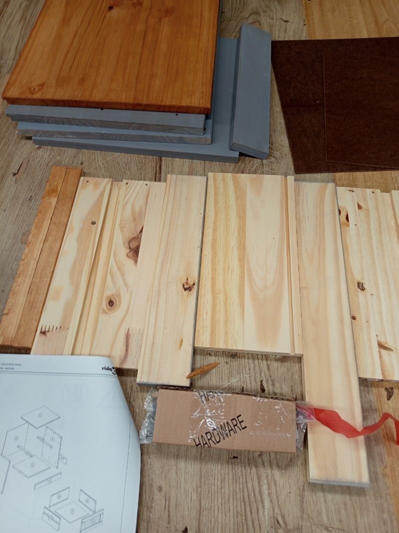 Material: Madera maciza de pino con acabado encerado, madera de ingeniería, metal