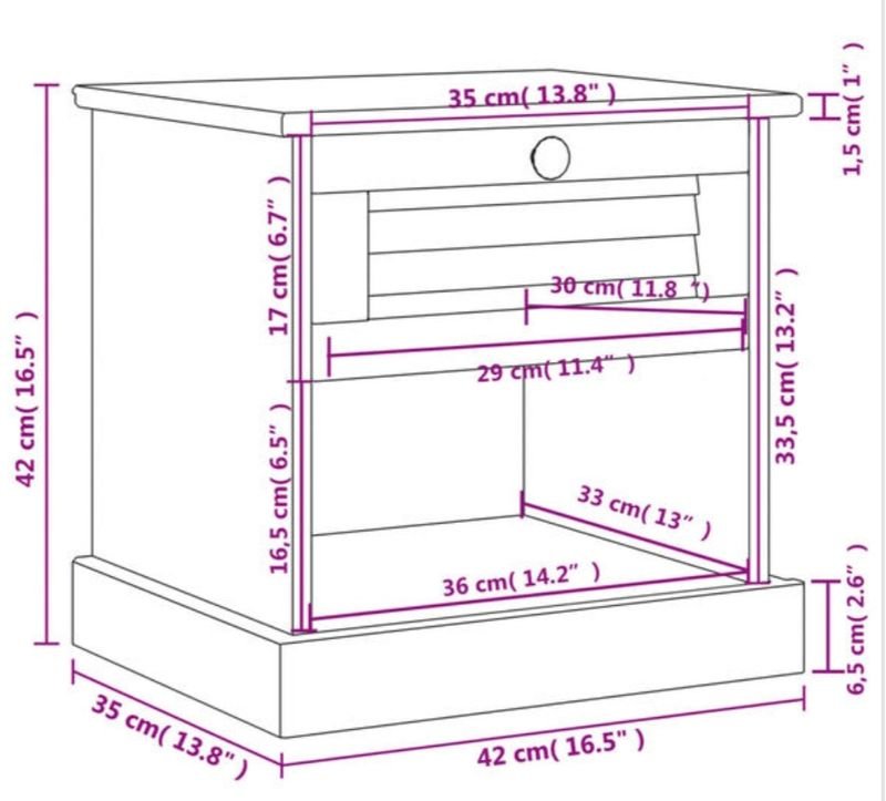 Dimensiones exteriores del cajón: 35 x 17 cm (largo x ancho)