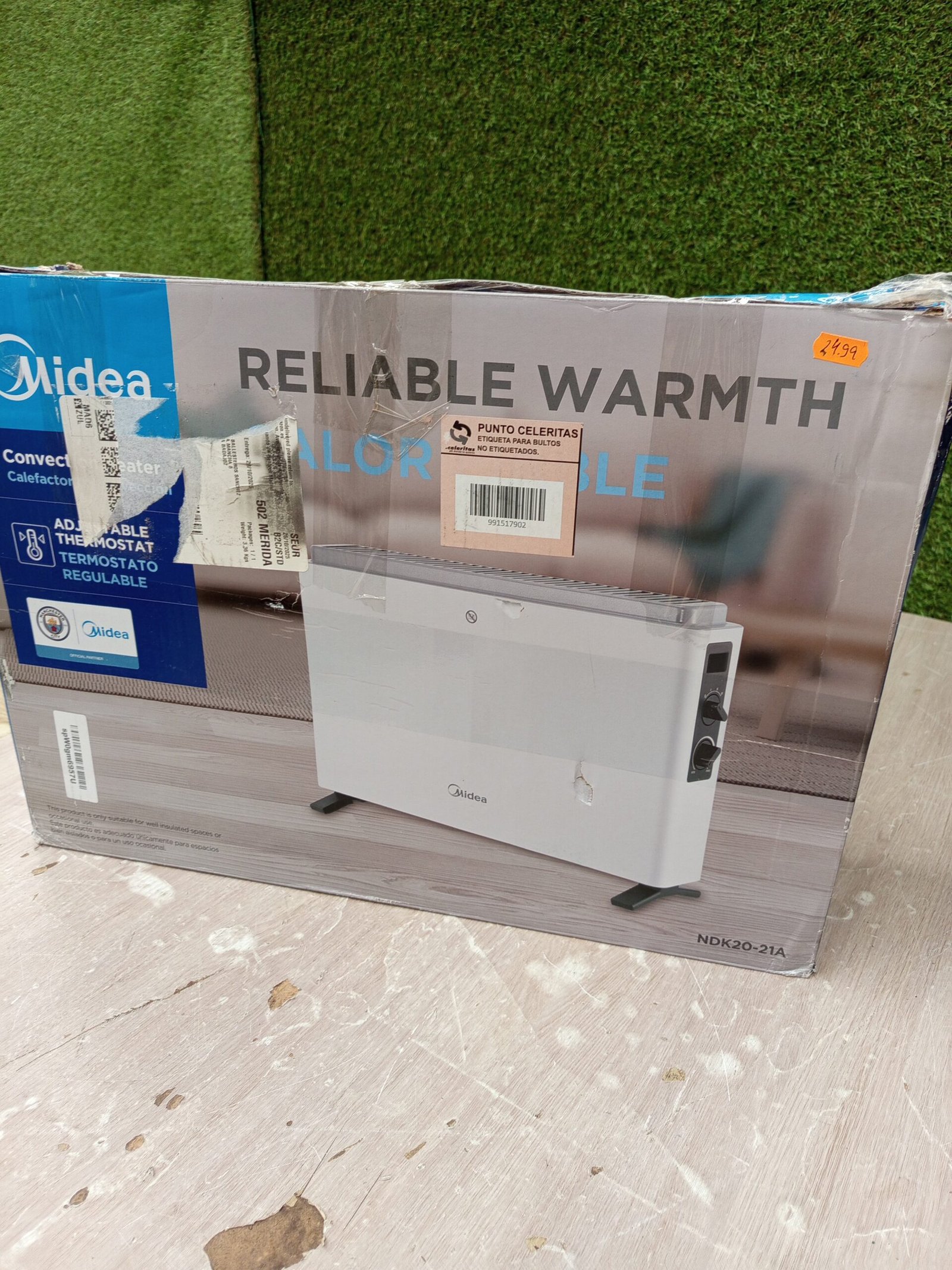 MIDEA Convector Radiador Electrico Bajo Consumo | 2000W | Calefactor Electrico con Termostato Regulable, Estufa eléctrica con 3 Niveles de Potencia, Emisor Térmico con Protección de Sobrecalentamiento