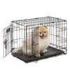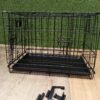 La jaula para perros incluye un panel divisor, una bandeja de plástico duradera y a prueba de fugas, patas protectoras de goma y asa de transporte